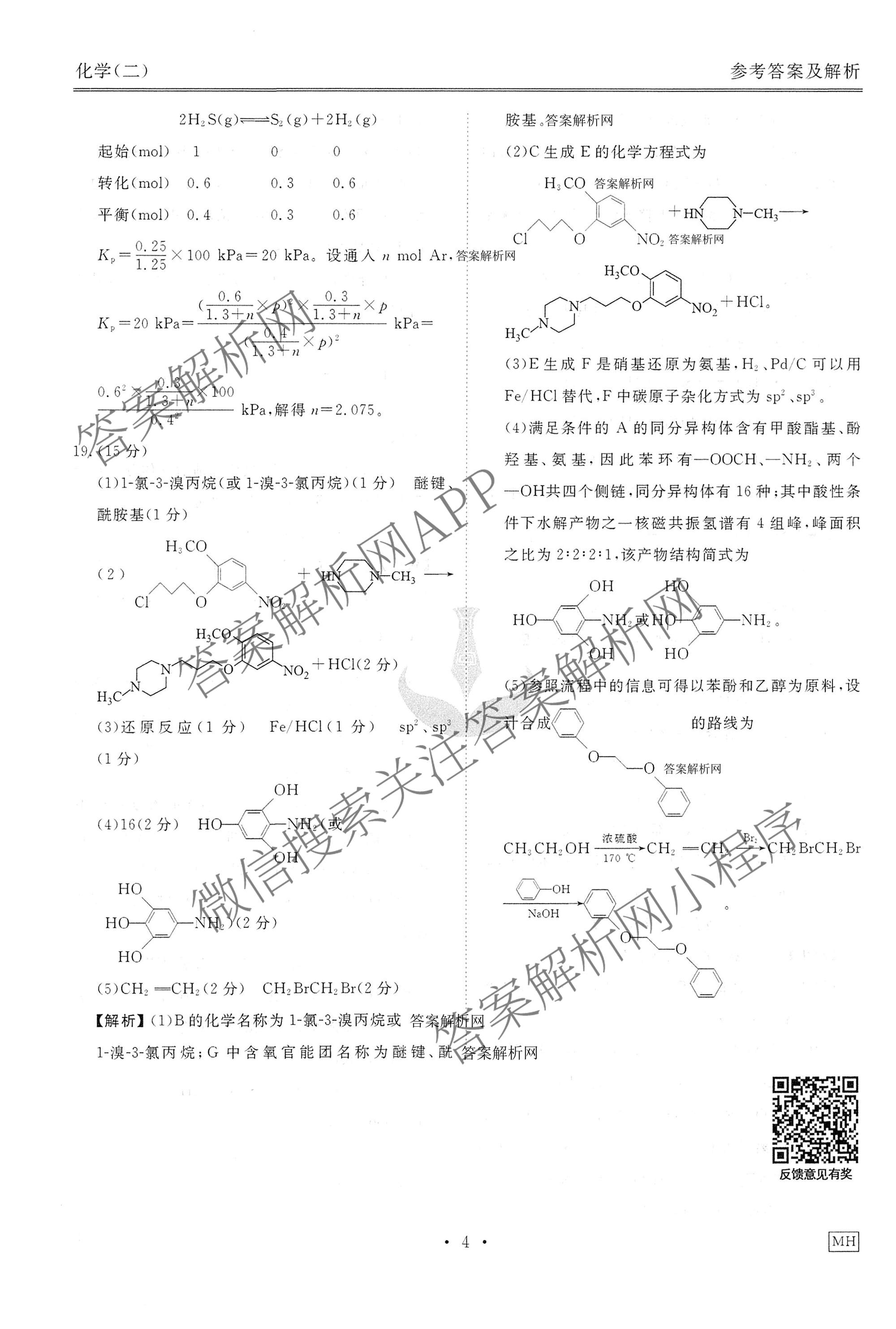 - [高三][衡水金卷先享题]调研卷2026年普通高中学业水平选择性考试模拟试题(二)2化学(AH)答案