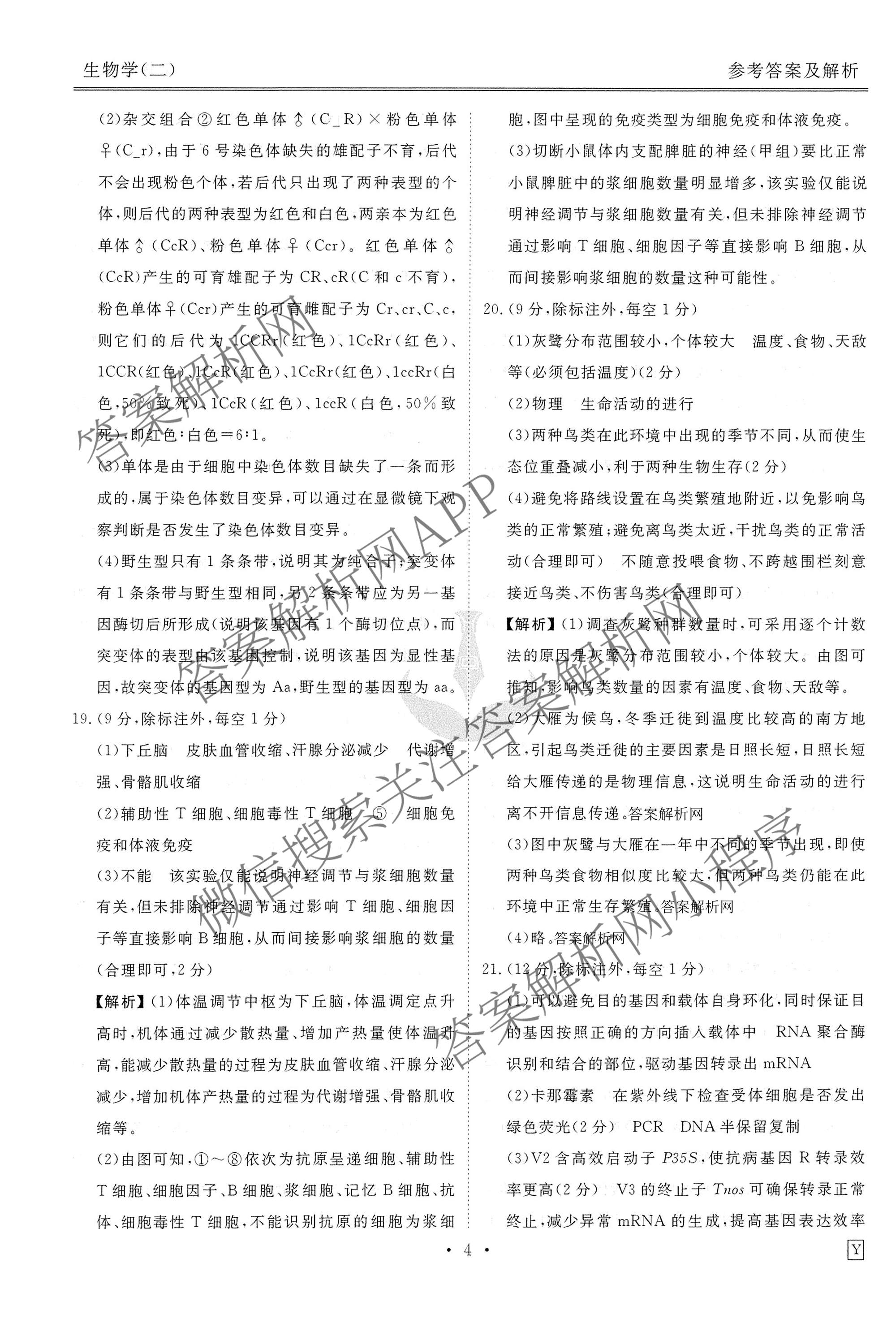 (高三)衡水金卷先享题·调研卷·2026年普通高中学业水平选择性考试模拟(二)2生物(Y)答案