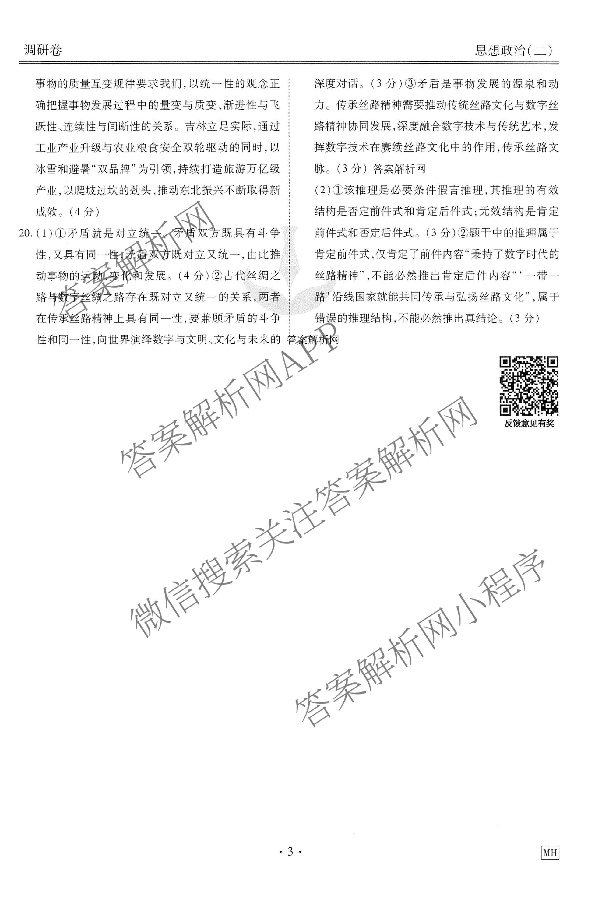 [衡水金卷先享题]调研卷2026年普通高中学业水平选择性考试模拟(二)2政治(MH)答案