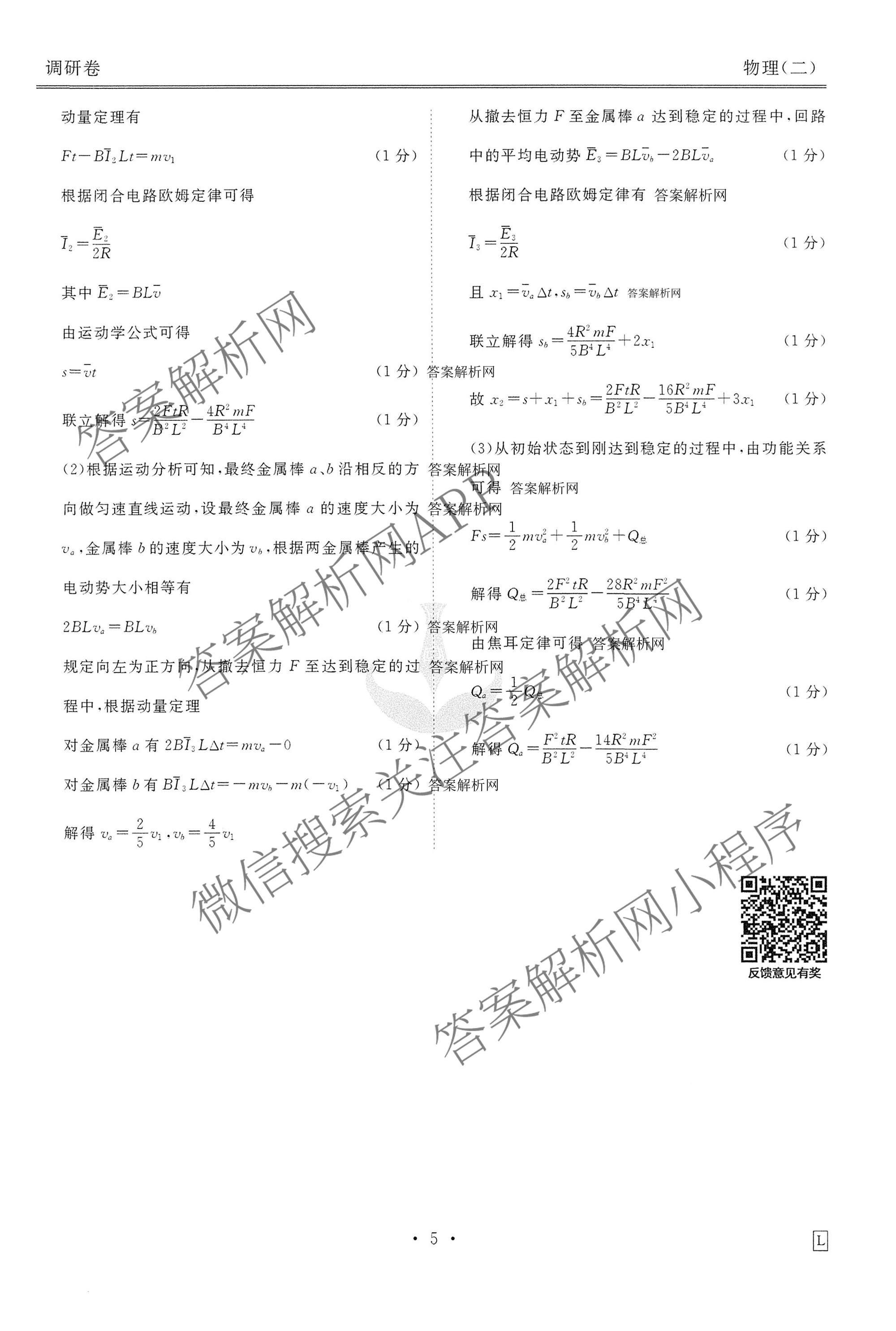 衡水金卷先享题调研卷2026年普通高中学业水平选择性考试模拟(二)2物理(L)答案