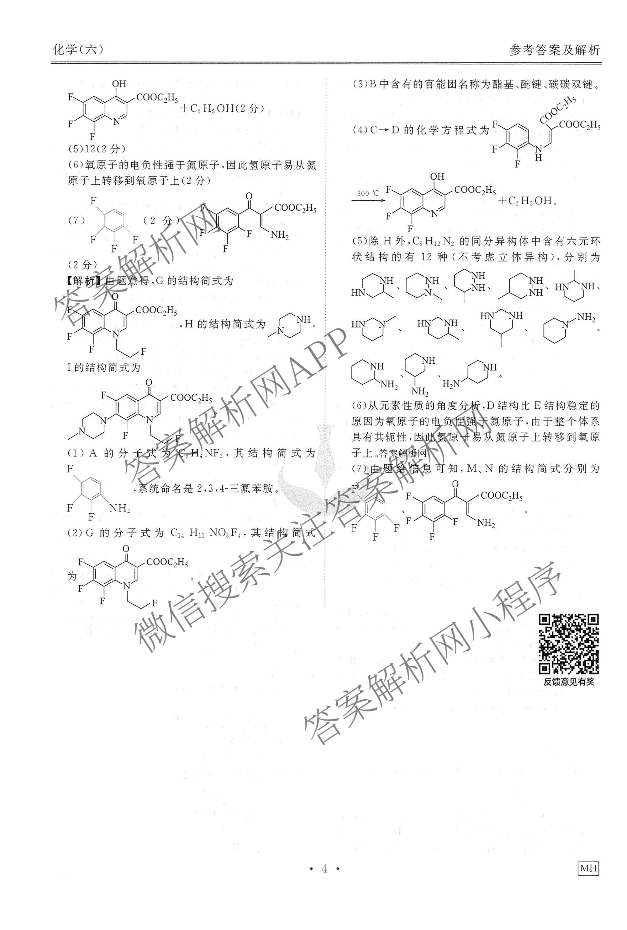 - (高三)(衡水金卷先享题)调研卷2026年普通高中学业水平选择性考试模拟试题(六)6化学(AH)答案