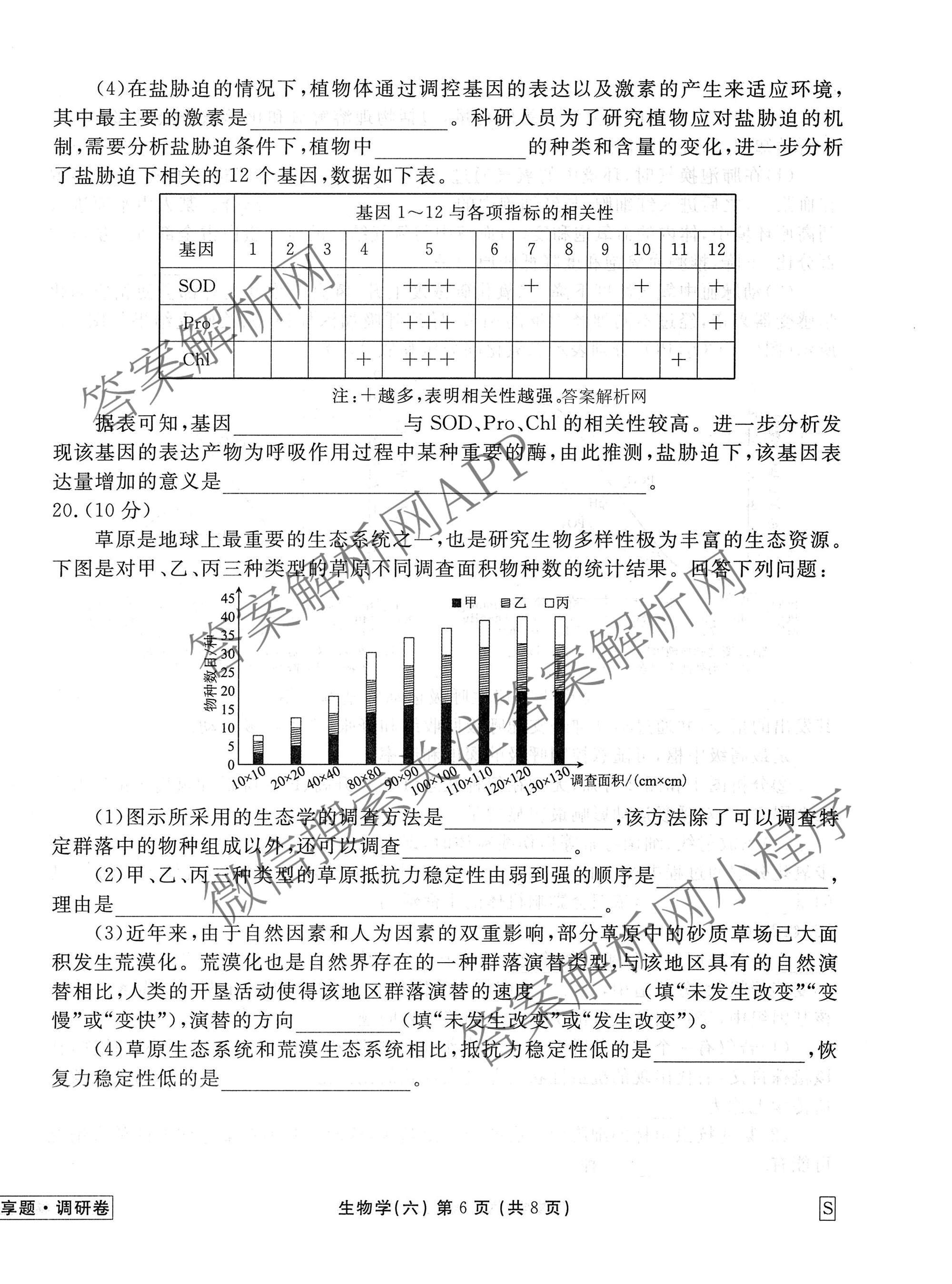 衡水金卷先享题·调研卷·2026年普通高中学业水平选择性考试模拟(六)6生物(S)试题,目前衡水金卷先享题答案网已经汇总了衡水金卷先享题·调研卷·2026年普通高中学业水平选择性考试模拟(六)6生物(S)试题的各科答案和试卷,获取更多衡水金卷先享题答案解析,请在关注本站。