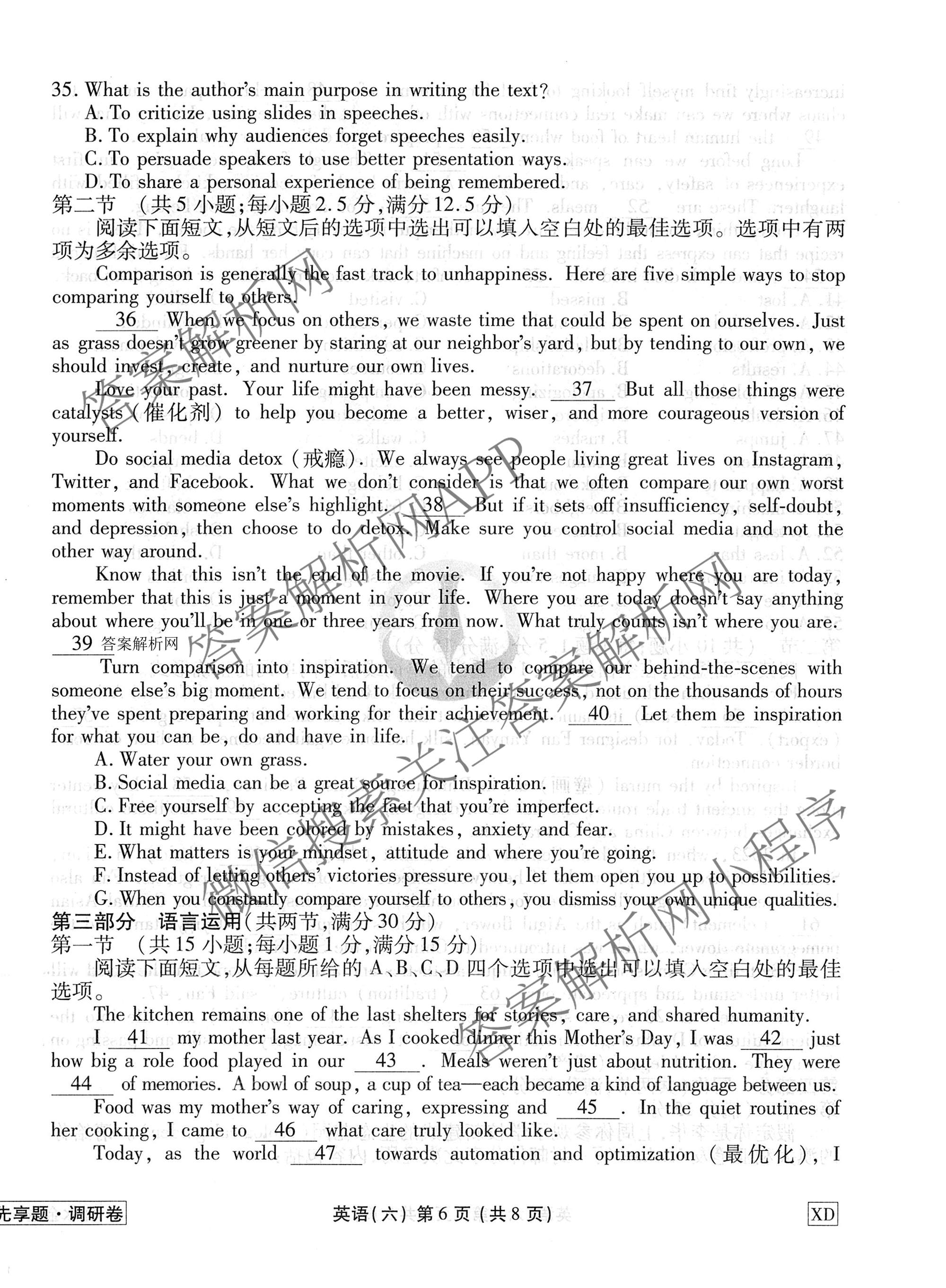- (高三)(衡水金卷先享题)调研卷2026年普通高等学校招生全国统一考试模拟试题(六)6英语(XD)试题