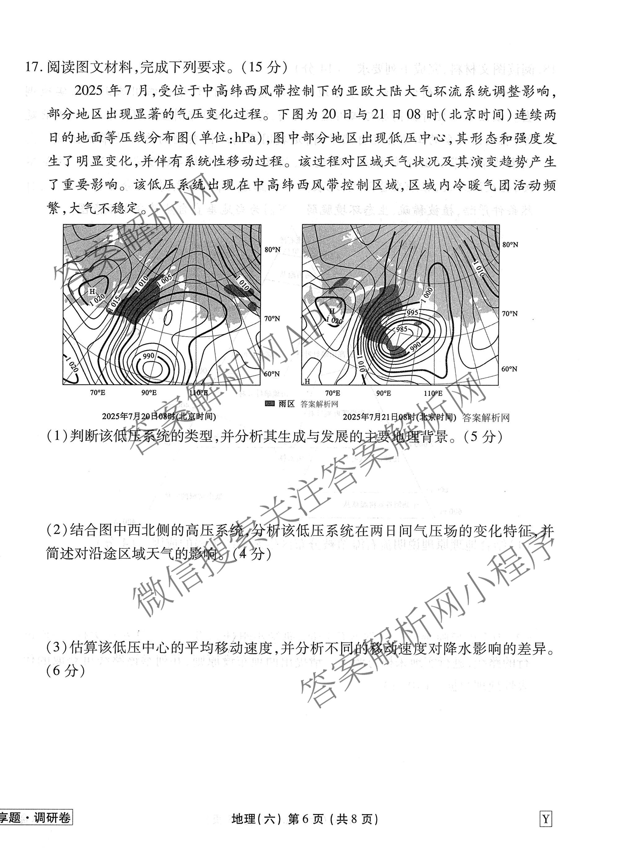 - [衡水金卷先享题]调研卷2026年普通高中学业水平选择性考试模拟(六)6地理(Y)答案