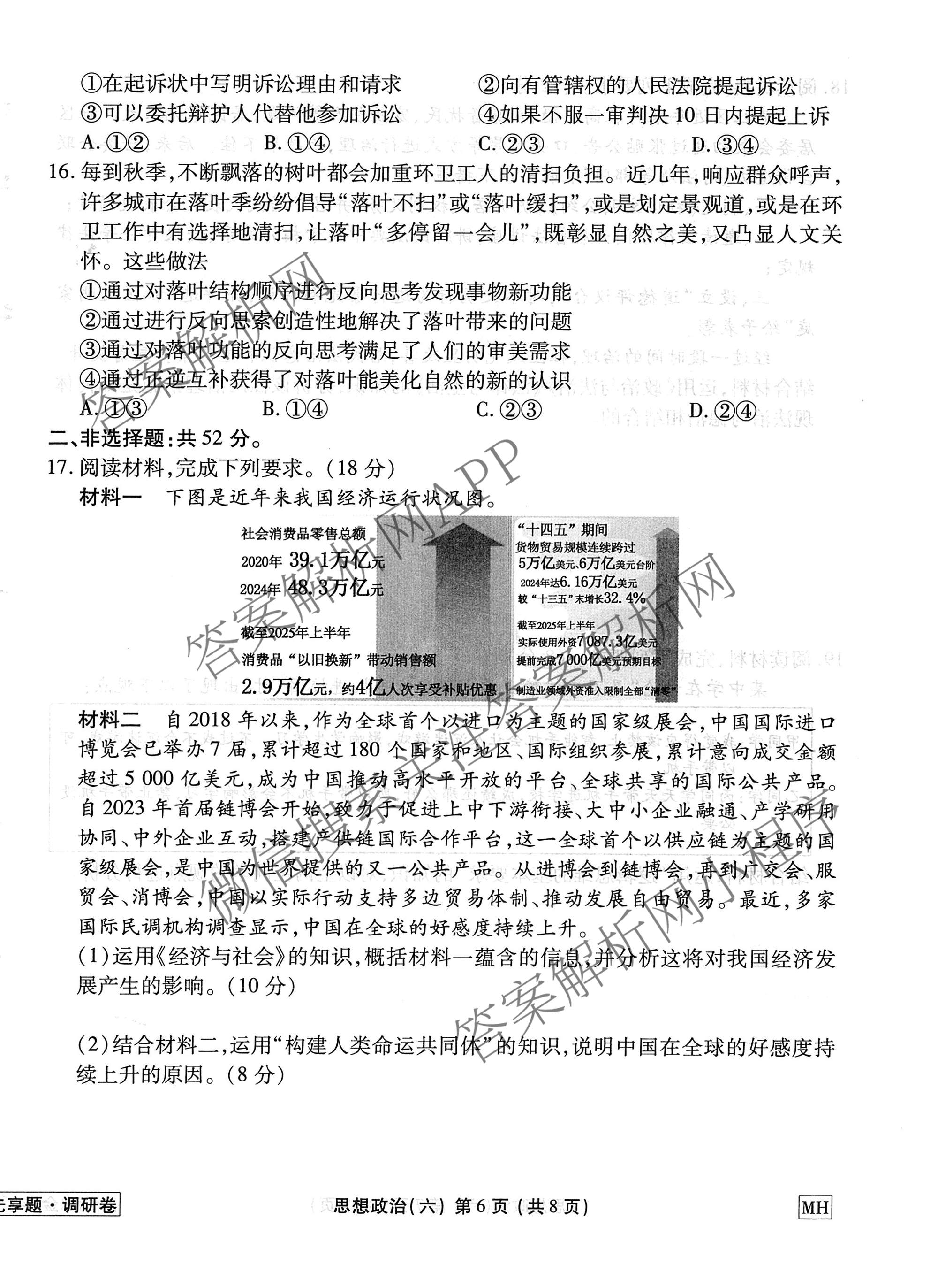 (衡水金卷先享题)调研卷2026年普通高中学业水平选择性考试模拟(六)6政治(MH)试题