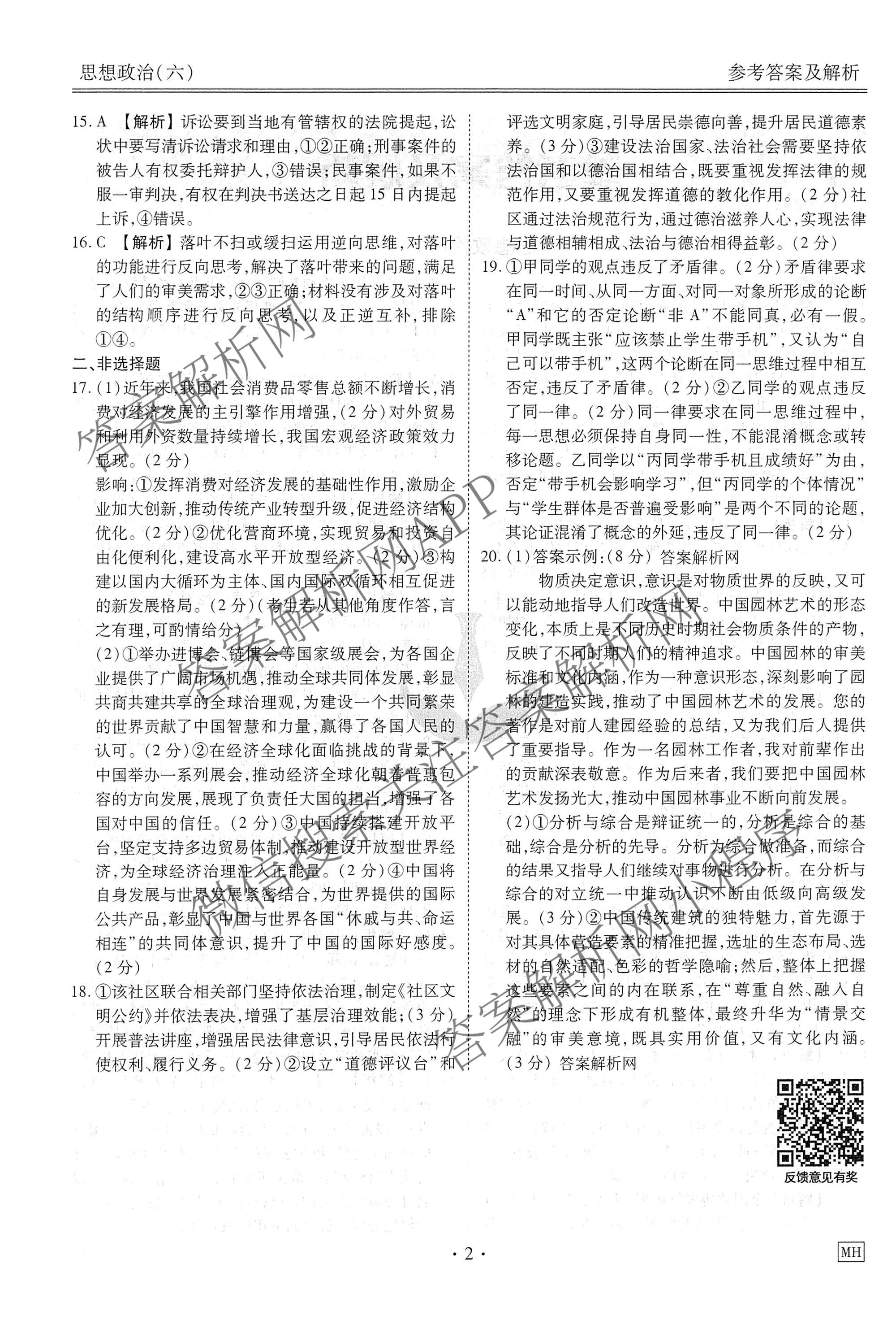 (高三)[衡水金卷先享题]调研卷2026年普通高中学业水平选择性考试模拟(六)6政治(MH)答案
