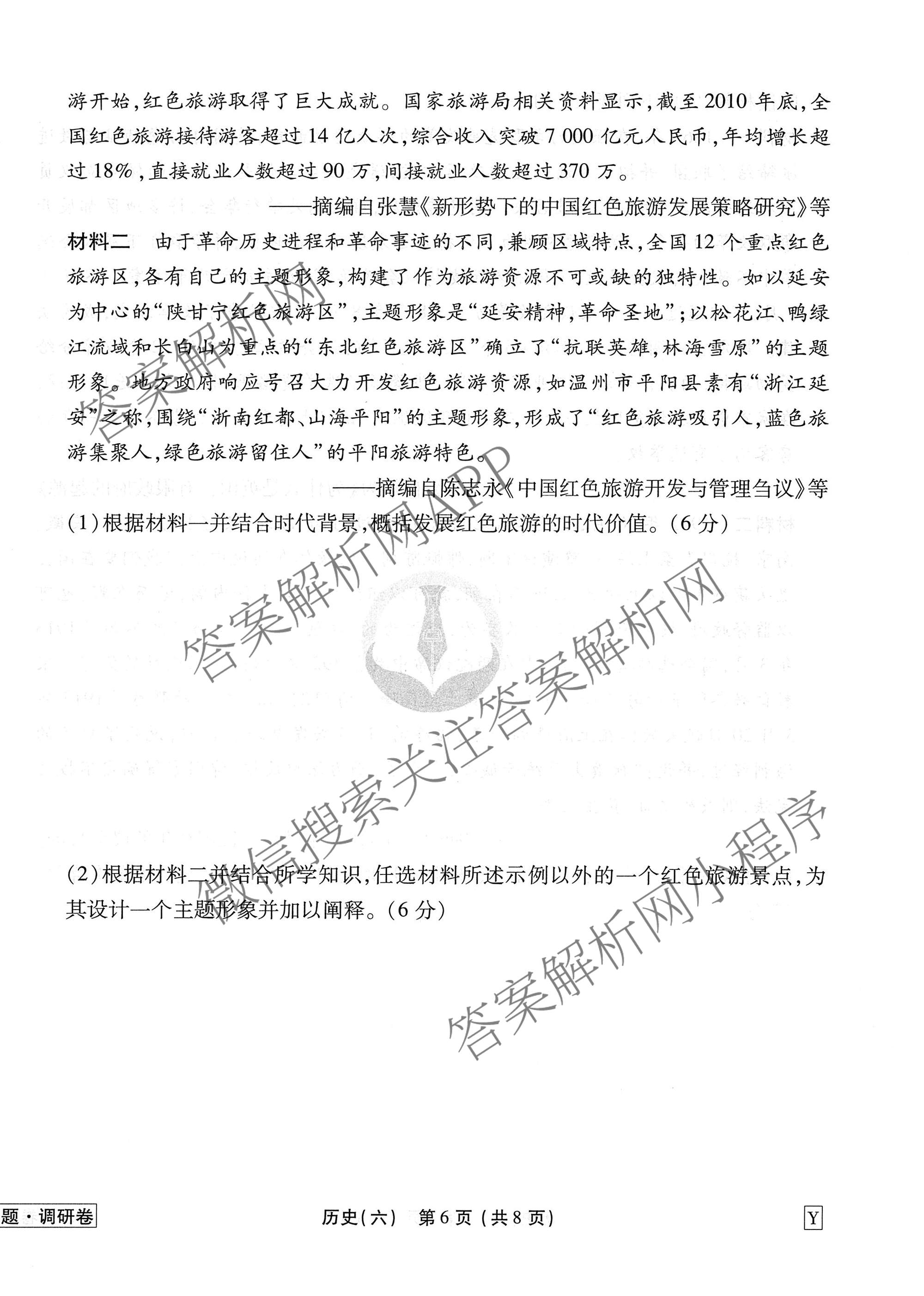 - [衡水金卷先享题]·调研卷·2026年普通高中学业水平选择性考试模拟(六)6历史(Y)答案