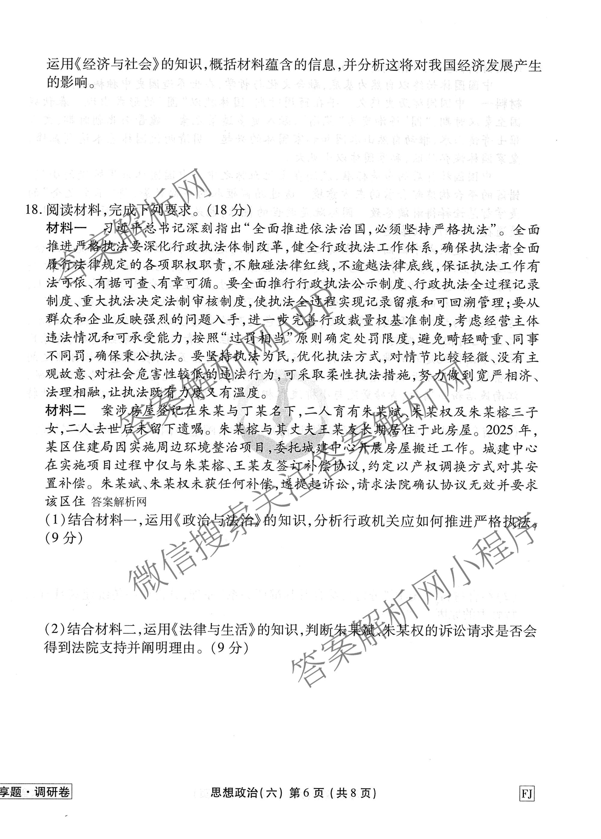 - (高三)衡水金卷先享题·调研卷·2026年普通高中学业水平选择性考试模拟(六)6政治(FJ)试题