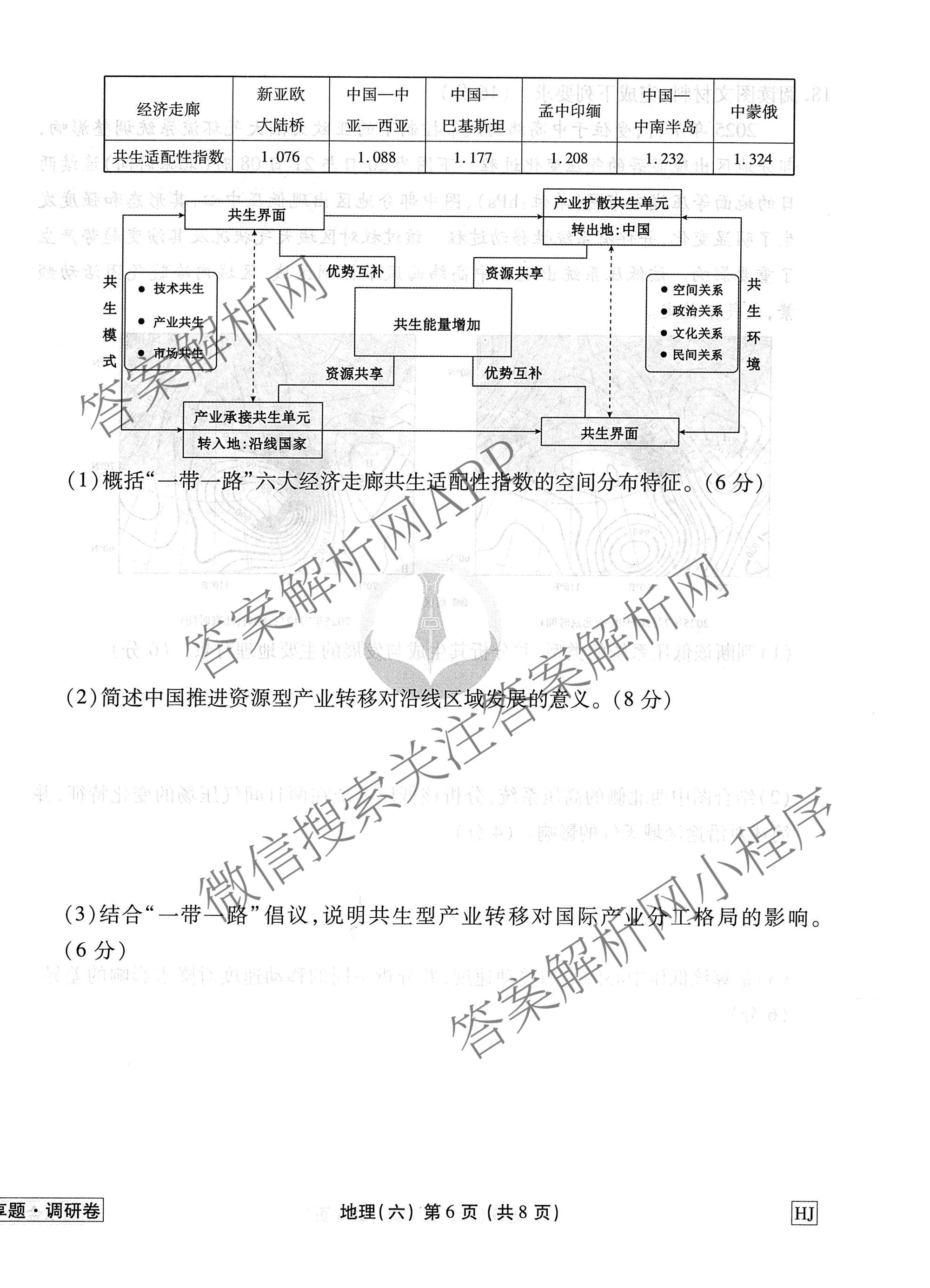 - (衡水金卷先享题)调研卷2026年普通高中学业水平选择性考试模拟试题(六)6地理(HJ)答案