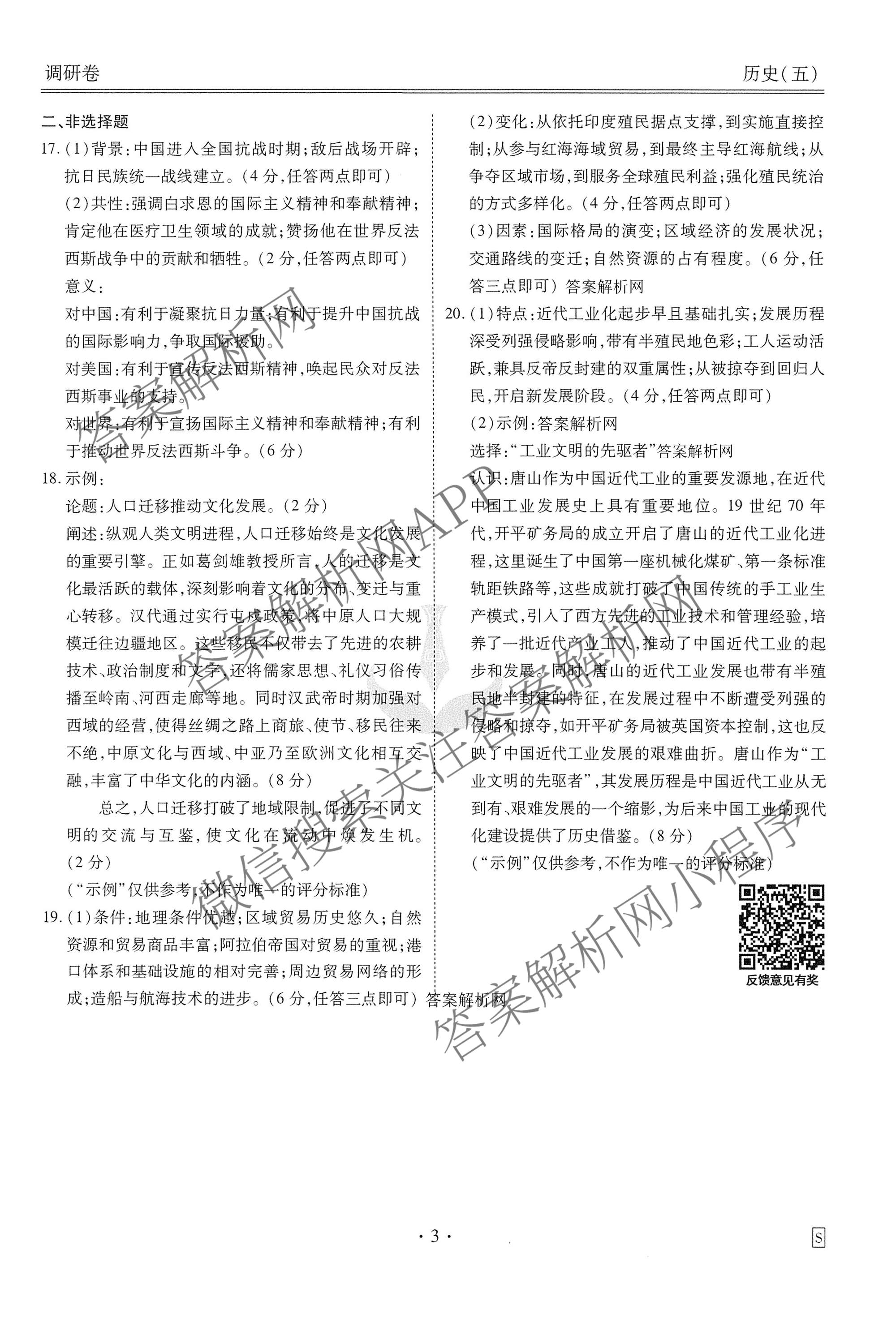 - [高三]衡水金卷先享题调研卷2026年普通高中学业水平选择性考试模拟(五)5历史(S)答案
