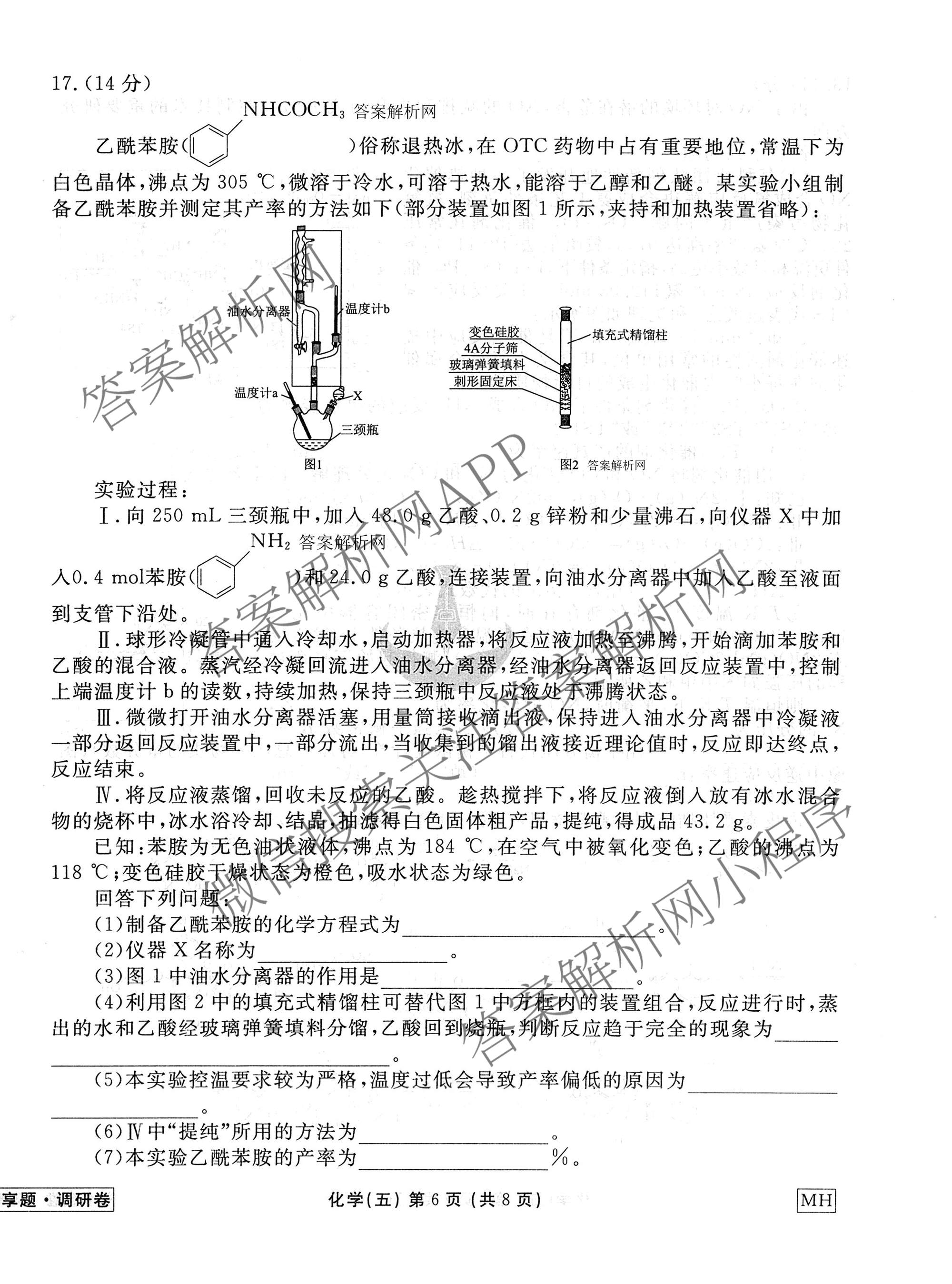 - (衡水金卷先享题)·调研卷·2026年普通高中学业水平选择性考试模拟(五)5化学(MH)答案