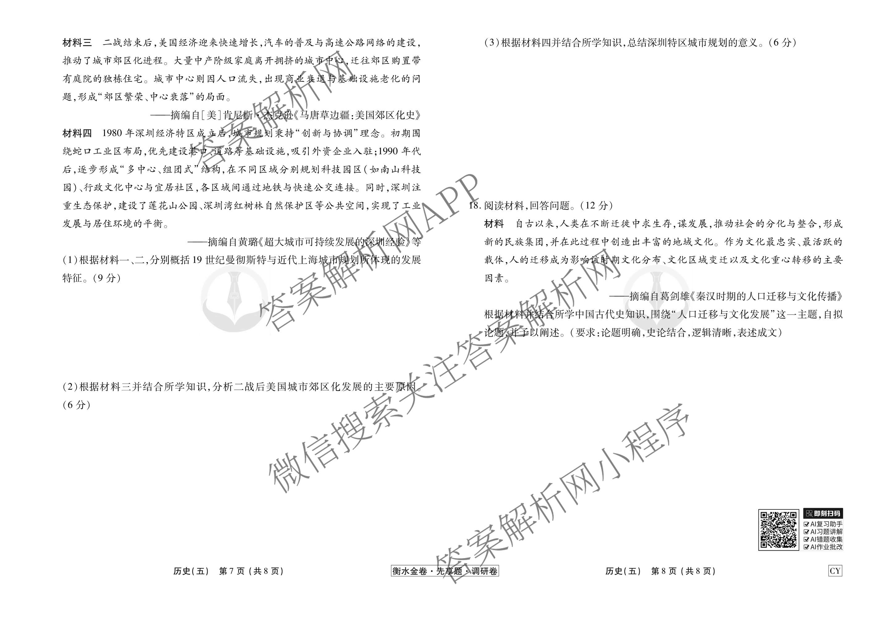 - (高三)衡水金卷先享题调研卷2026年普通高中学业水平选择性考试模拟试题(五)5历史(GD)试题