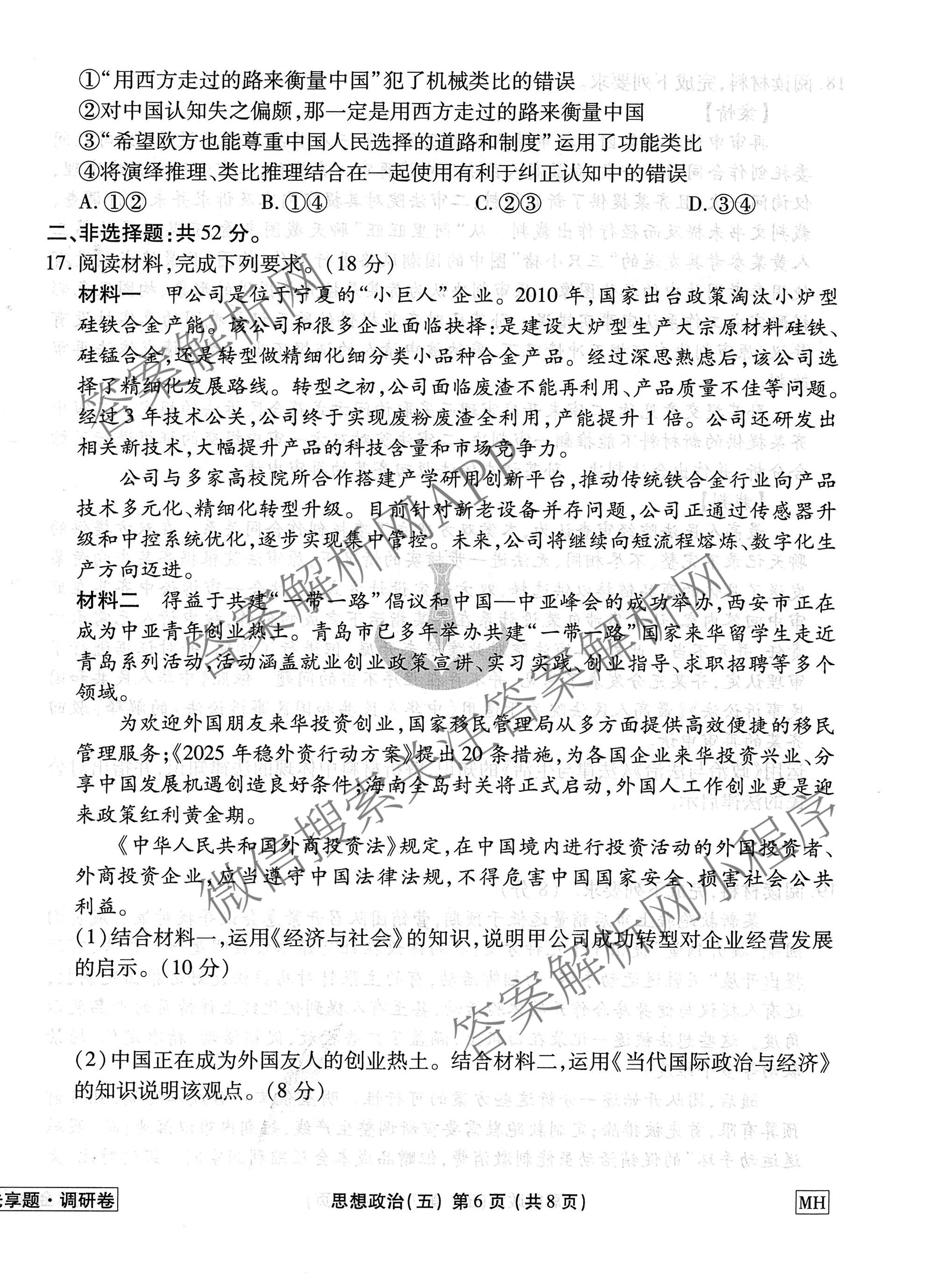 - [衡水金卷先享题]·调研卷·2026年普通高中学业水平选择性考试模拟试题(五)5政治(GX)答案