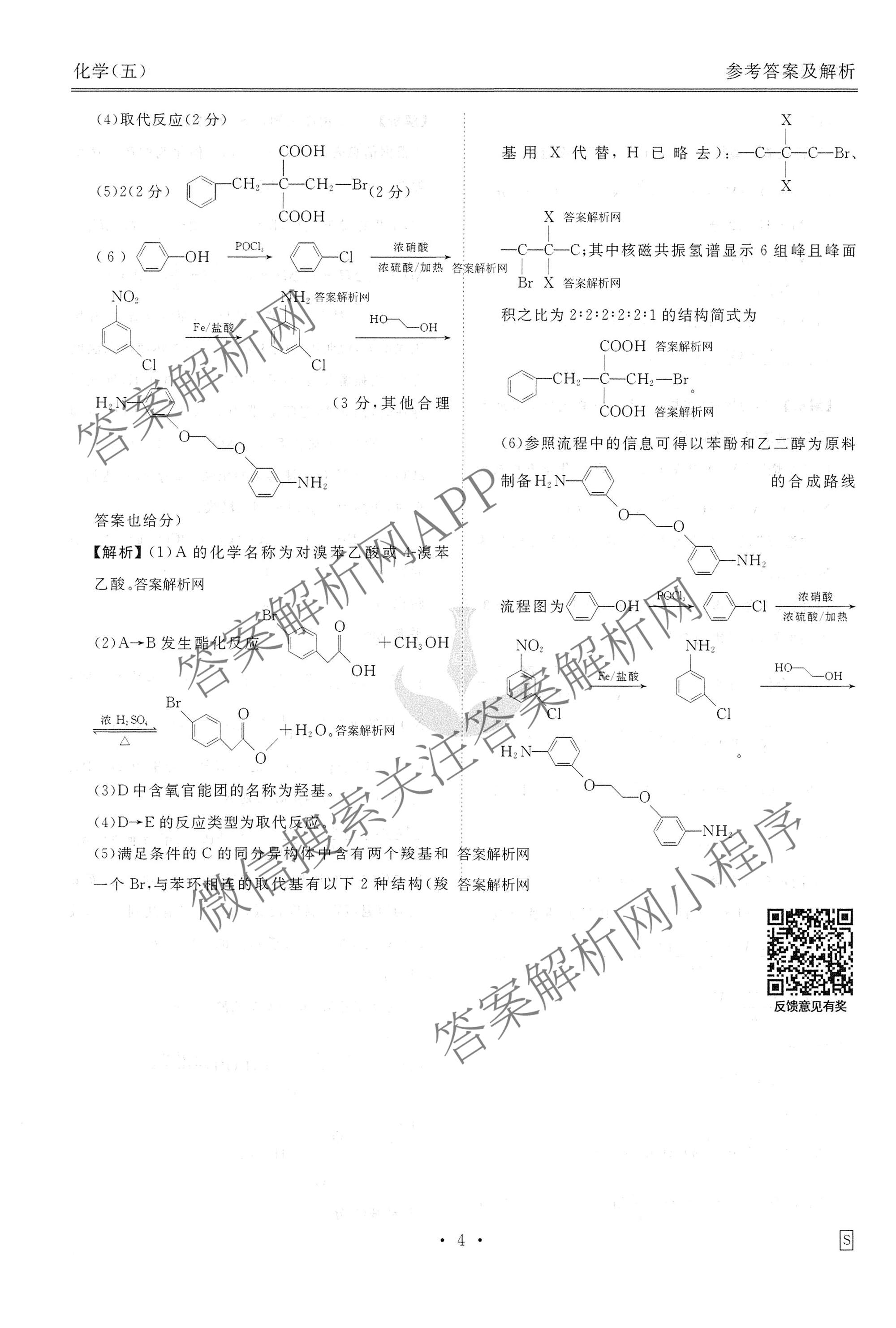 - [高三]衡水金卷先享题调研卷2026年普通高中学业水平选择性考试模拟(五)5化学(S)答案