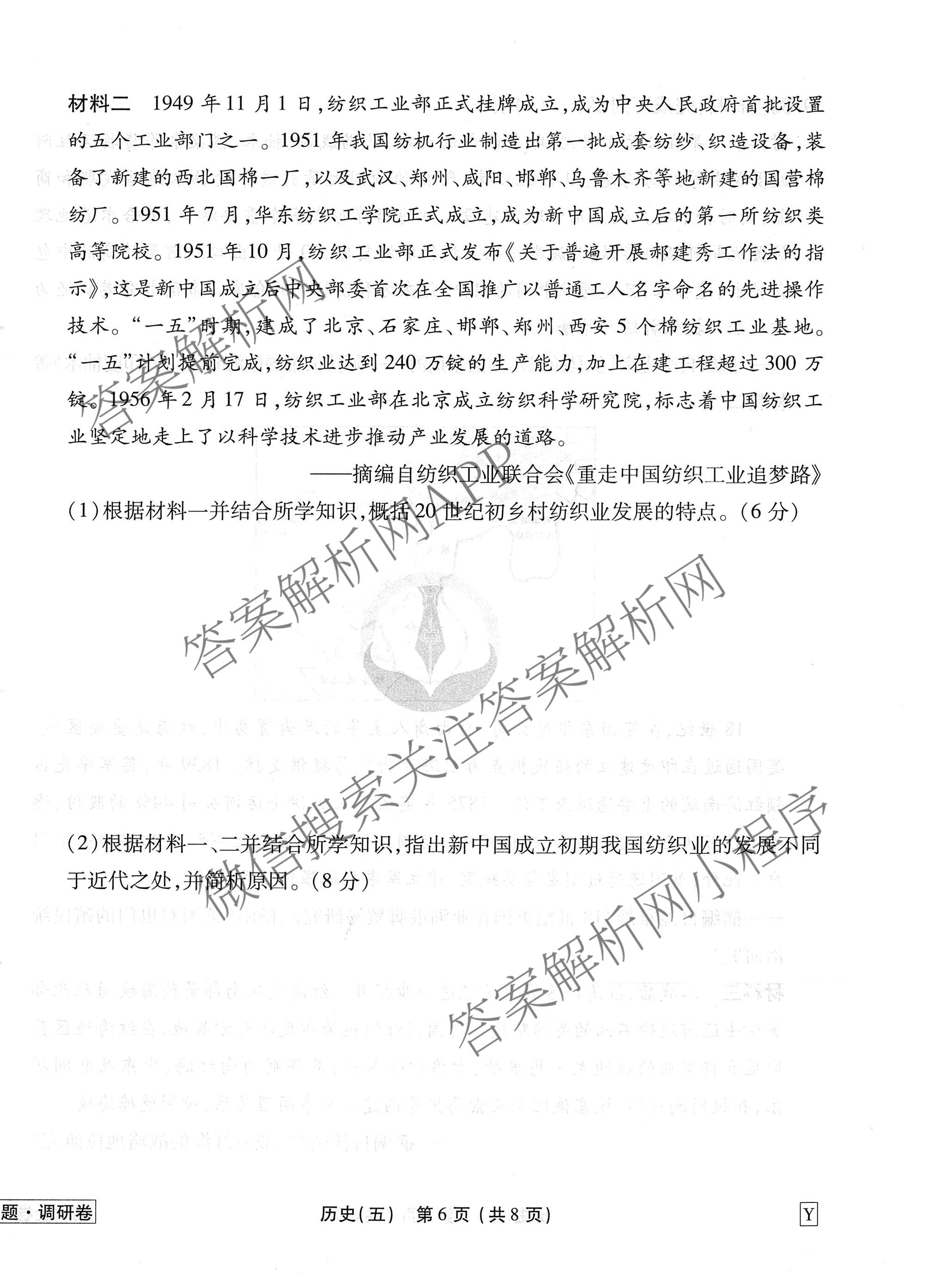 - [高三](衡水金卷先享题)·调研卷·2026年普通高中学业水平选择性考试模拟(五)5历史(Y)答案