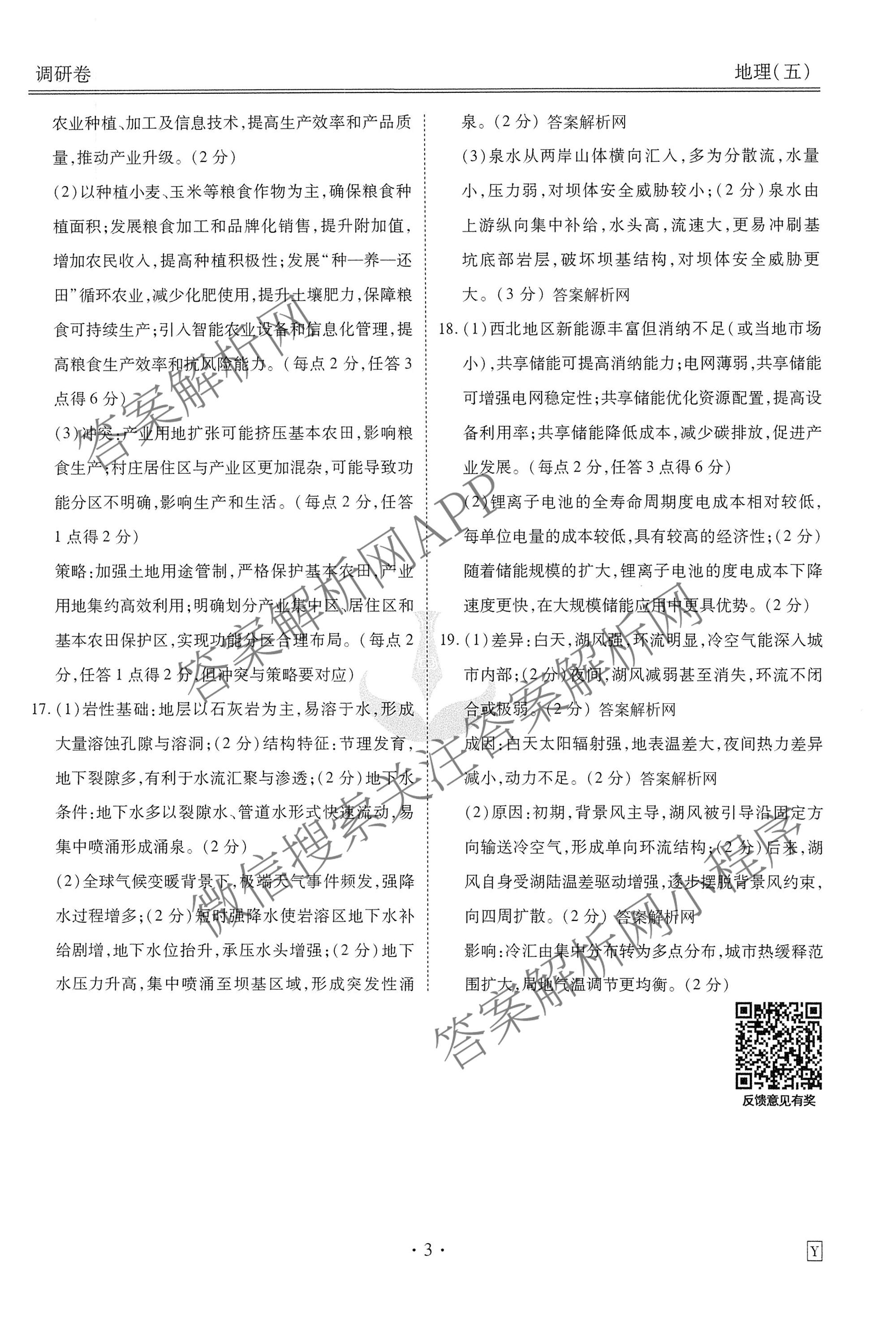 - [高三](衡水金卷先享题)·调研卷·2026年普通高中学业水平选择性考试模拟(五)5地理(Y)答案