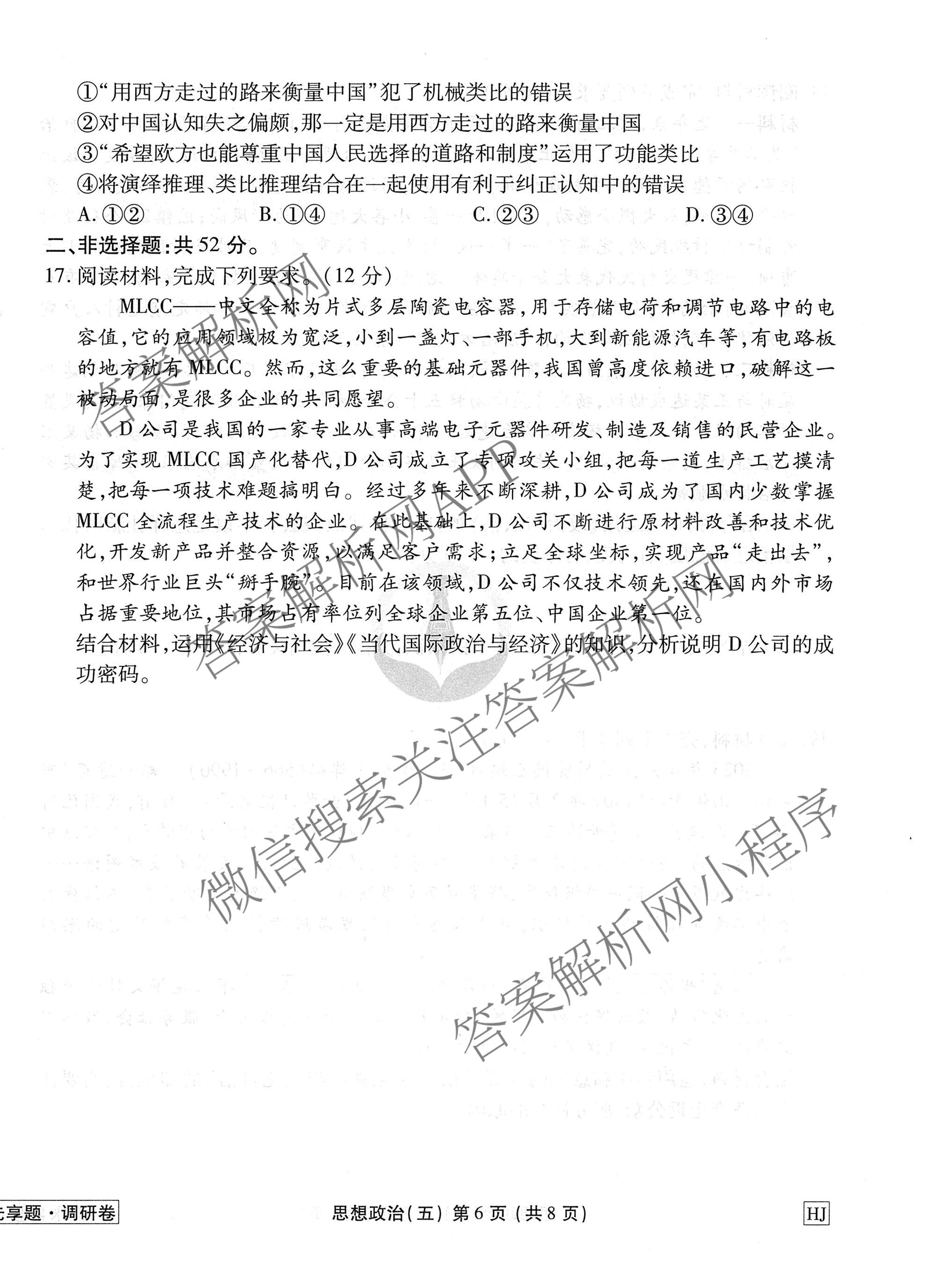衡水金卷先享题·调研卷·2026年普通高中学业水平选择性考试模拟(五)5政治(HJ)试题,目前衡水金卷先享题答案网已经汇总了衡水金卷先享题·调研卷·2026年普通高中学业水平选择性考试模拟(五)5政治(HJ)试题的各科答案和试卷,获取更多衡水金卷先享题答案解析,请在关注本站。