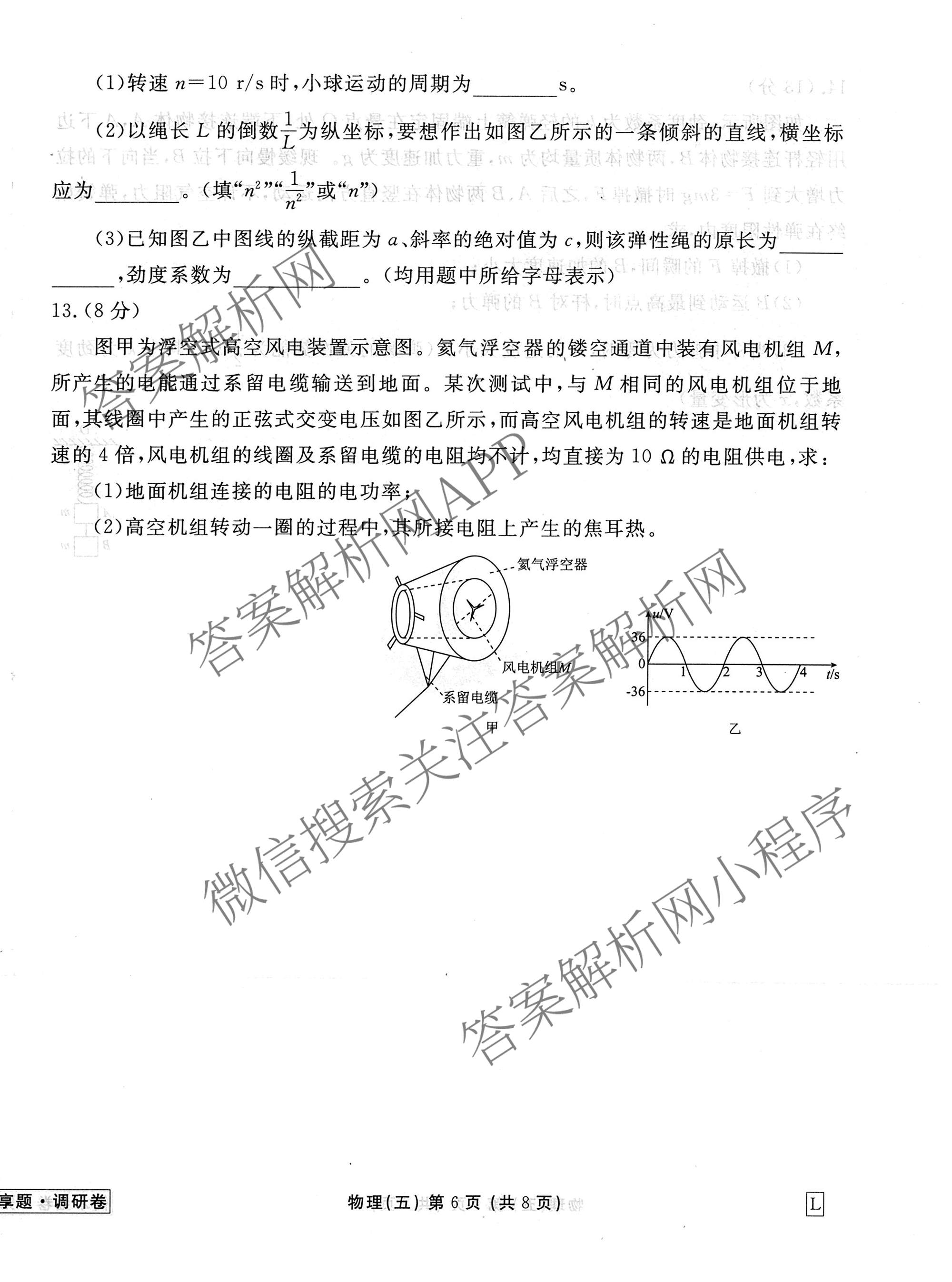 [高三]衡水金卷先享题调研卷2026年普通高中学业水平选择性考试模拟(五)5物理(L)试题