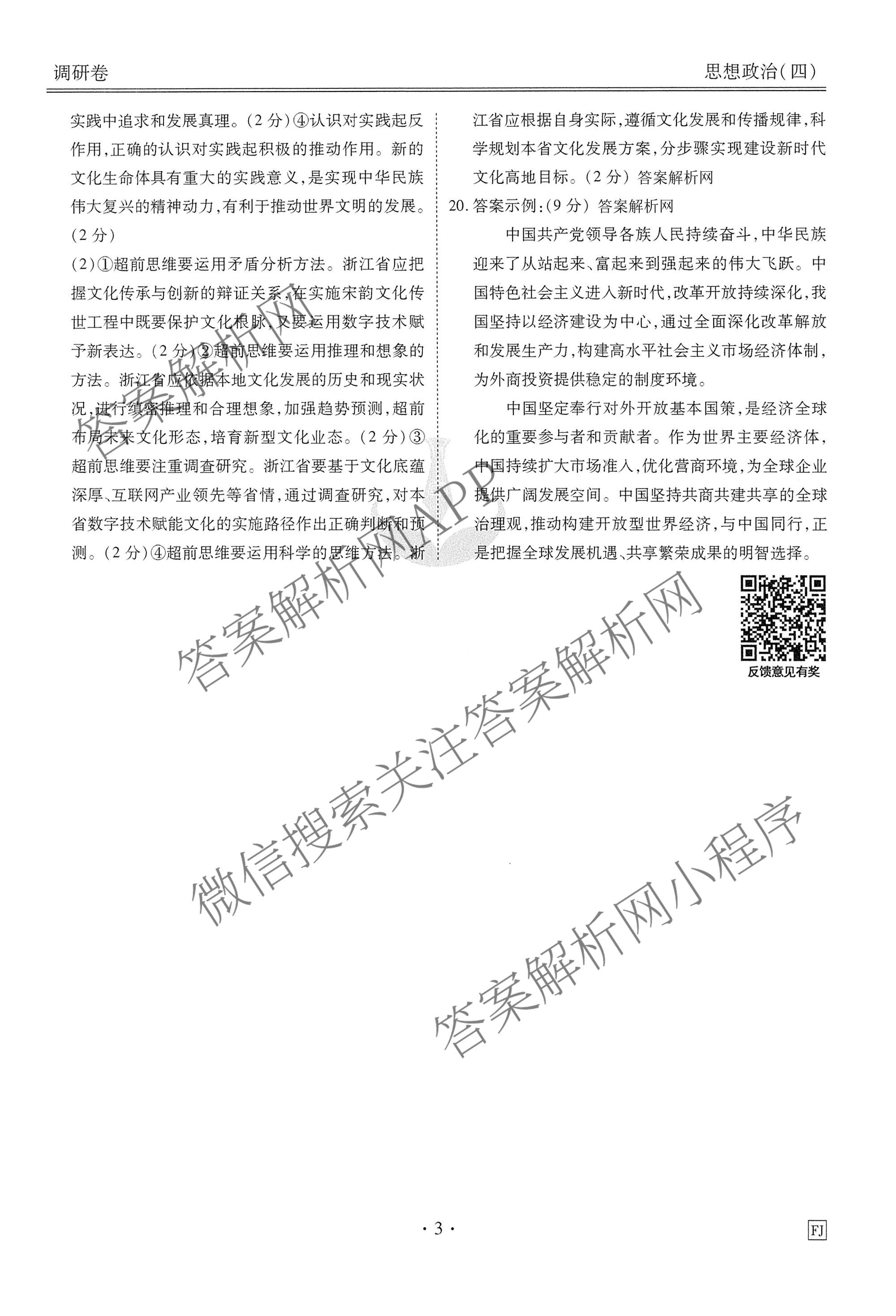 - [衡水金卷先享题]·调研卷·2026年普通高中学业水平选择性考试模拟(四)4政治(FJ)答案