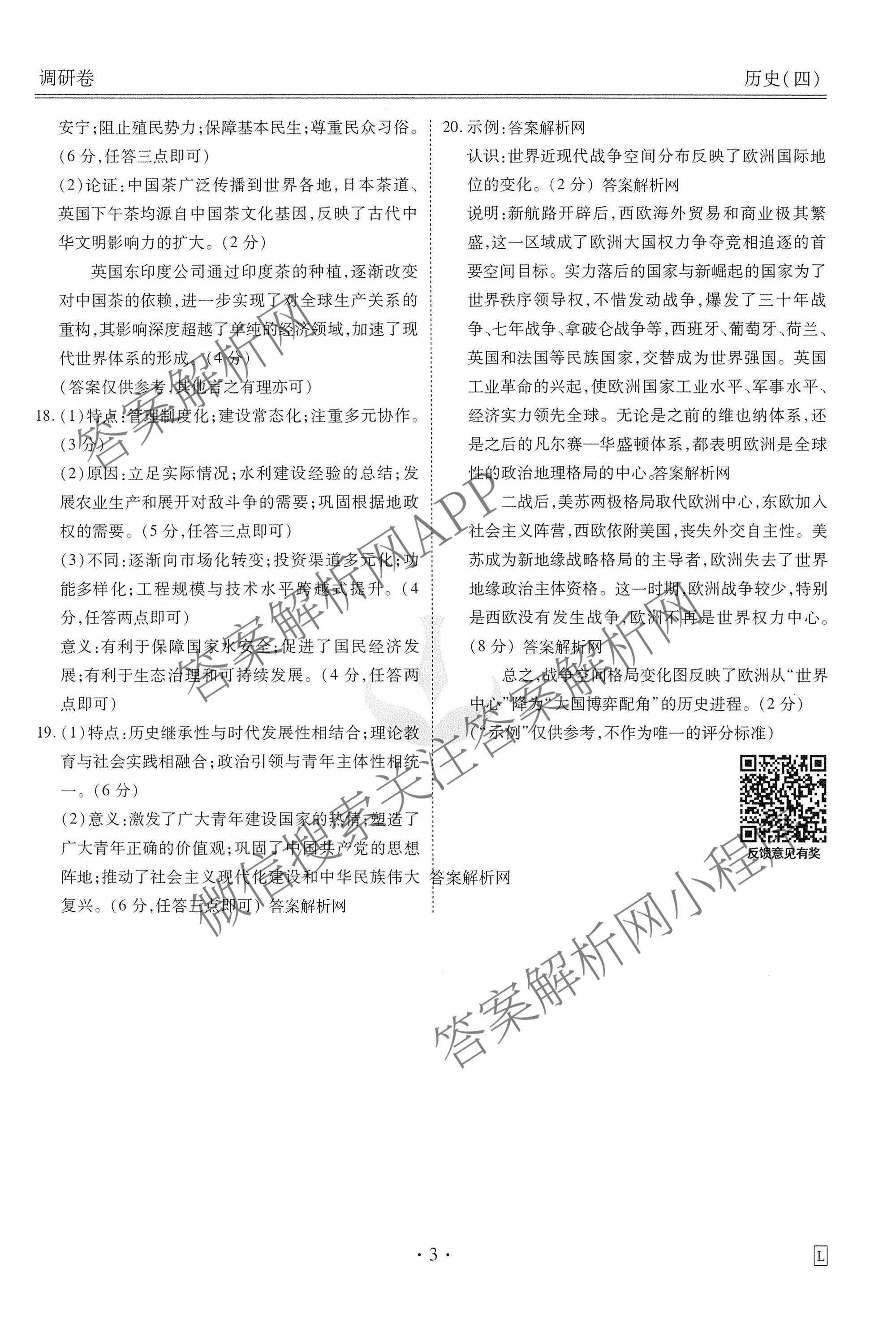 - 衡水金卷先享题调研卷2026年普通高中学业水平选择性考试模拟(四)4历史(L)答案