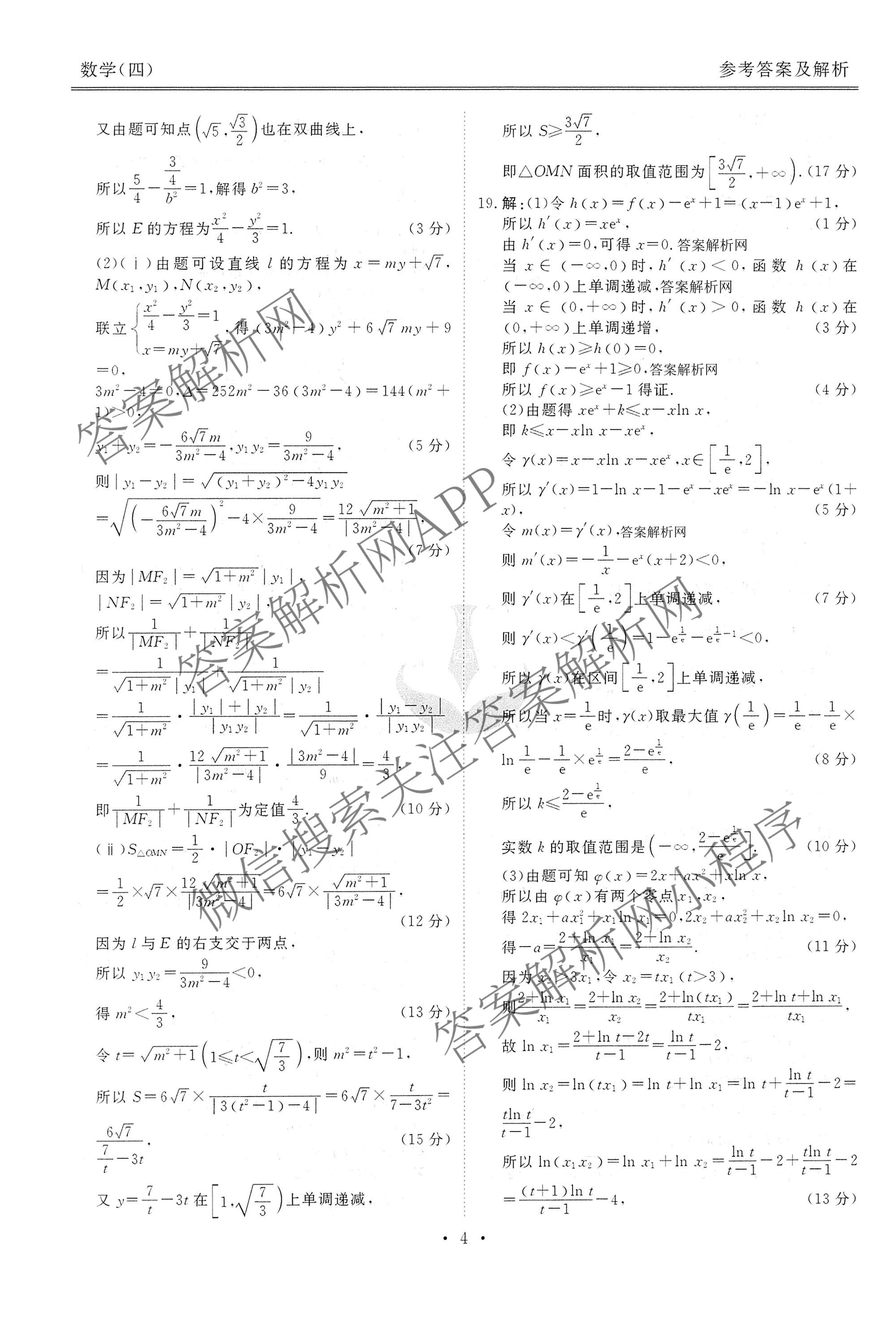 [衡水金卷先享题]调研卷2026年普通高等学校招生全国统一考试模拟试题(四)4数学(A)答案
