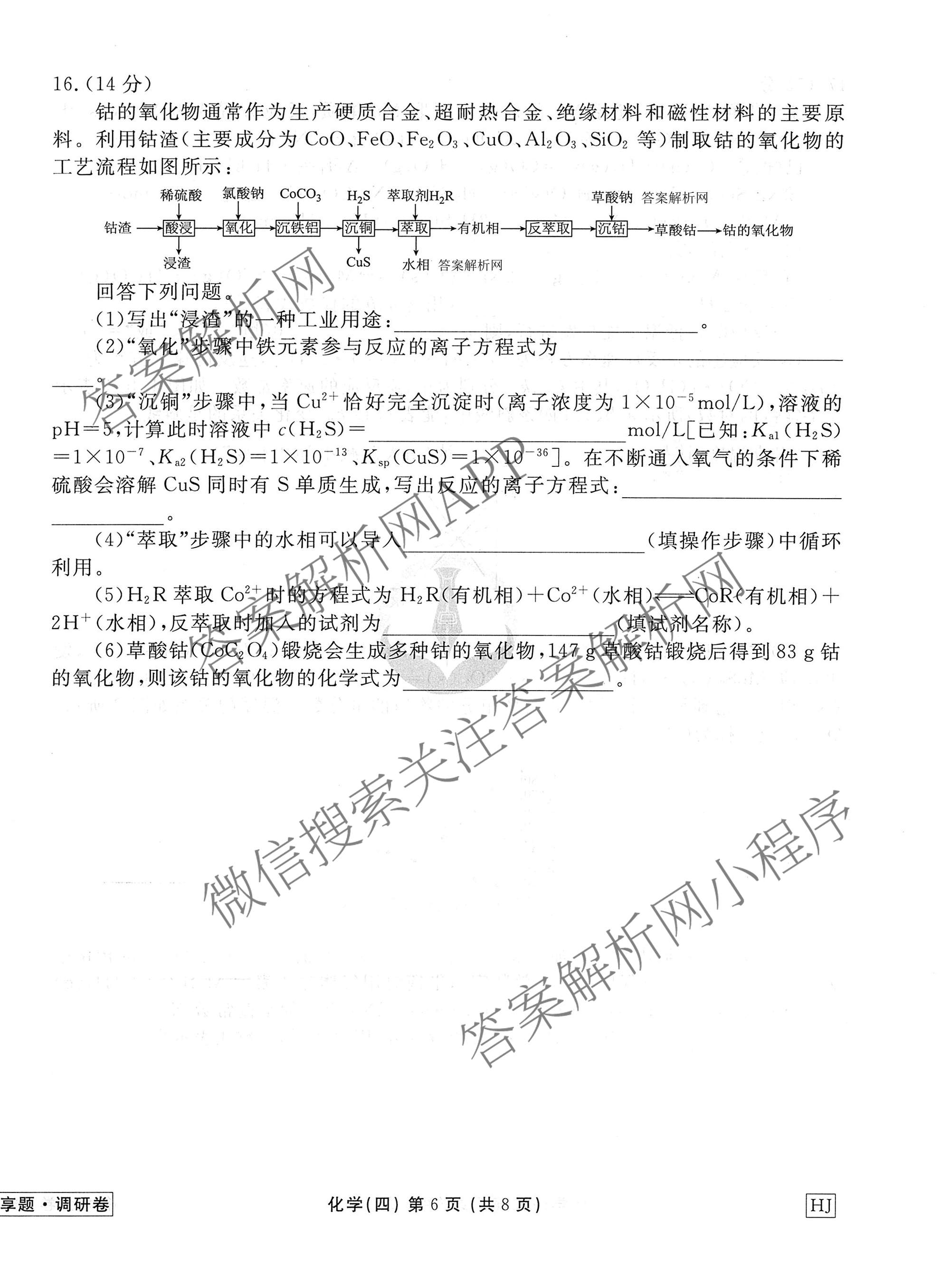 - [高三](衡水金卷先享题)调研卷2026年普通高中学业水平等级考试模拟试题(四)4化学(山东专版)答案