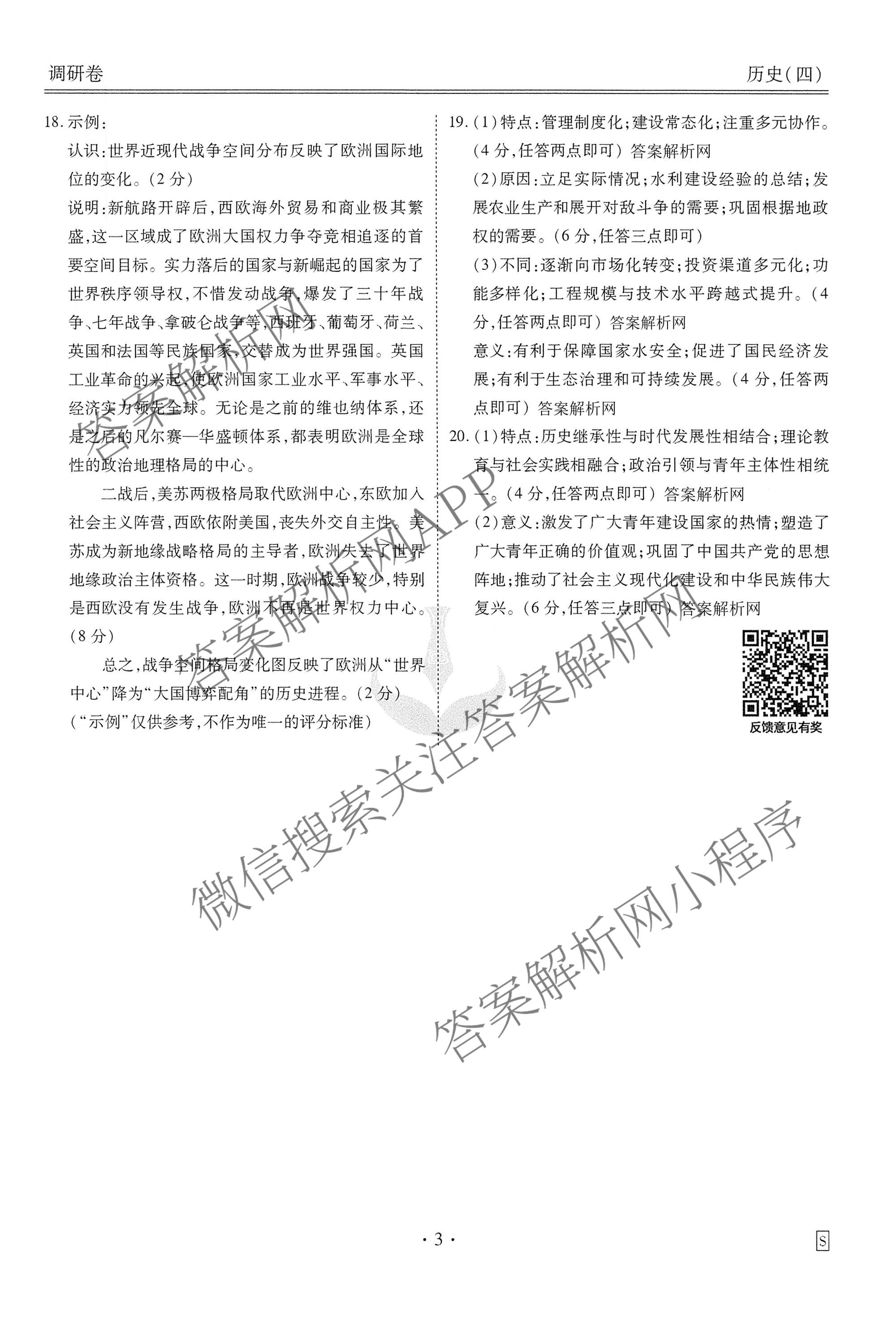 - [高三][衡水金卷先享题]调研卷2026年普通高中学业水平选择性考试模拟(四)4历史(S)答案