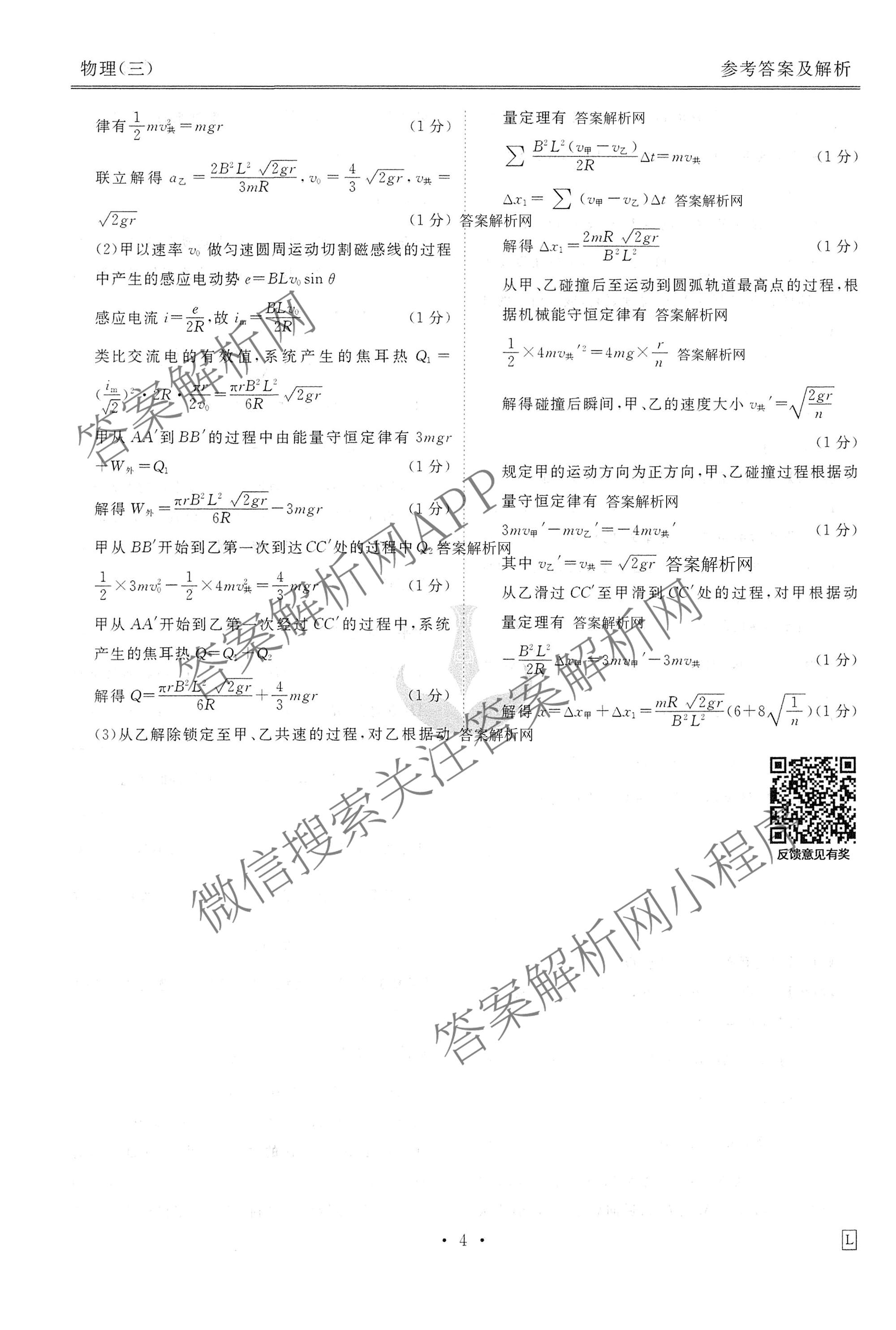 (高三)(衡水金卷先享题)·调研卷·2026年普通高中学业水平选择性考试模拟(三)3物理(L)答案