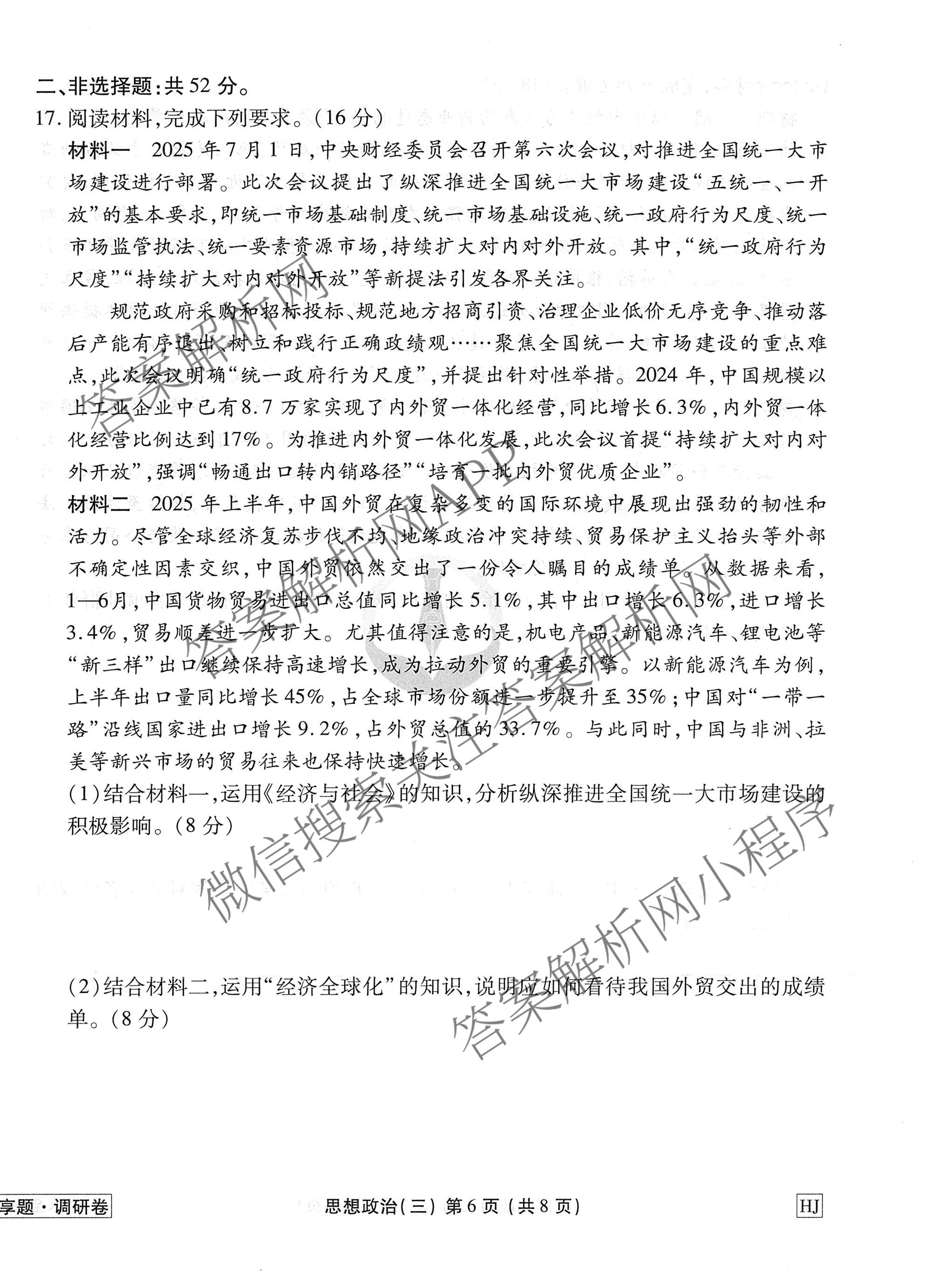 衡水金卷先享题·调研卷·2026年普通高中学业水平选择性考试模拟(三)3政治(HJ)试题,目前衡水金卷先享题答案网已经汇总了衡水金卷先享题·调研卷·2026年普通高中学业水平选择性考试模拟(三)3政治(HJ)试题的各科答案和试卷,获取更多衡水金卷先享题答案解析,请在关注本站。