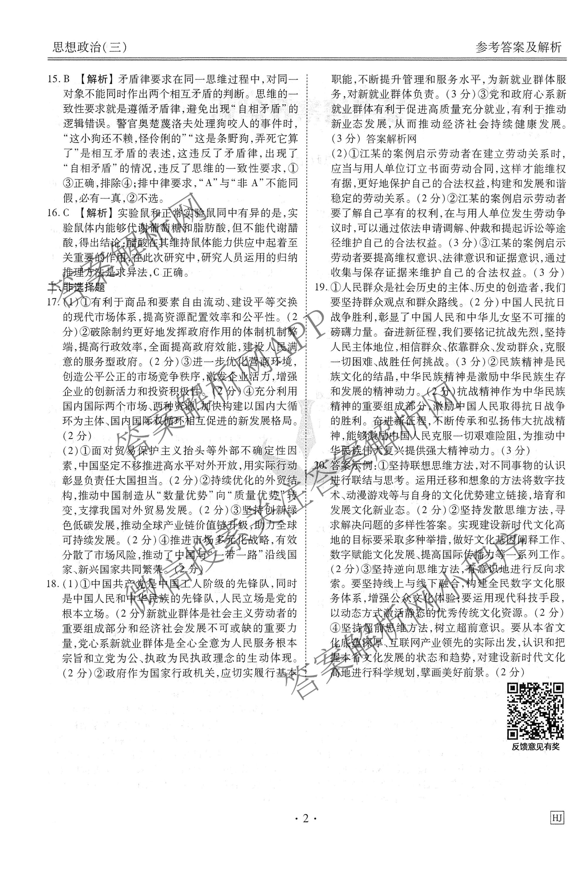 (高三)[衡水金卷先享题]·调研卷·2026年普通高中学业水平选择性考试模拟(三)3政治(HJ)答案