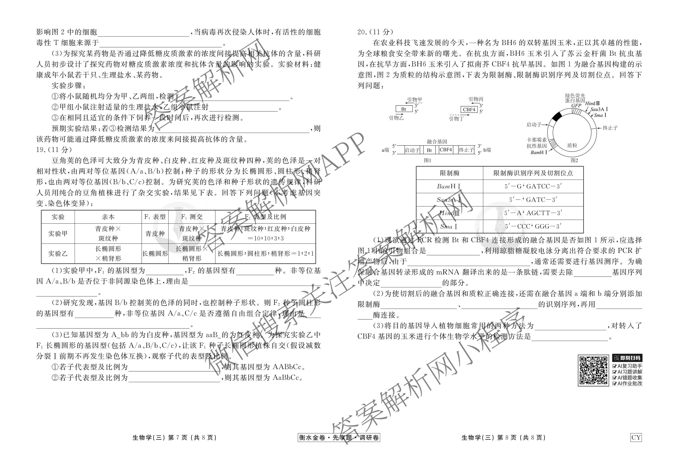衡水金卷先享题·调研卷·2026年普通高中学业水平选择性考试模拟试题(三)3生物(CY)试题,目前衡水金卷先享题答案网已经汇总了衡水金卷先享题·调研卷·2026年普通高中学业水平选择性考试模拟试题(三)3生物(CY)试题的各科答案和试卷,获取更多衡水金卷先享题答案解析,请在关注本站。