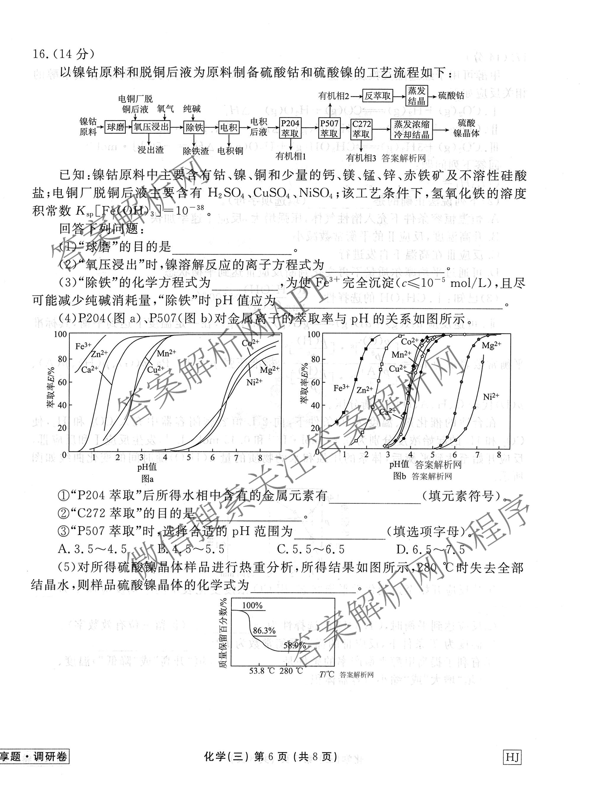 - (高三)(衡水金卷先享题)·调研卷·2026年普通高中学业水平选择性考试模拟试题(三)3化学(HN)答案