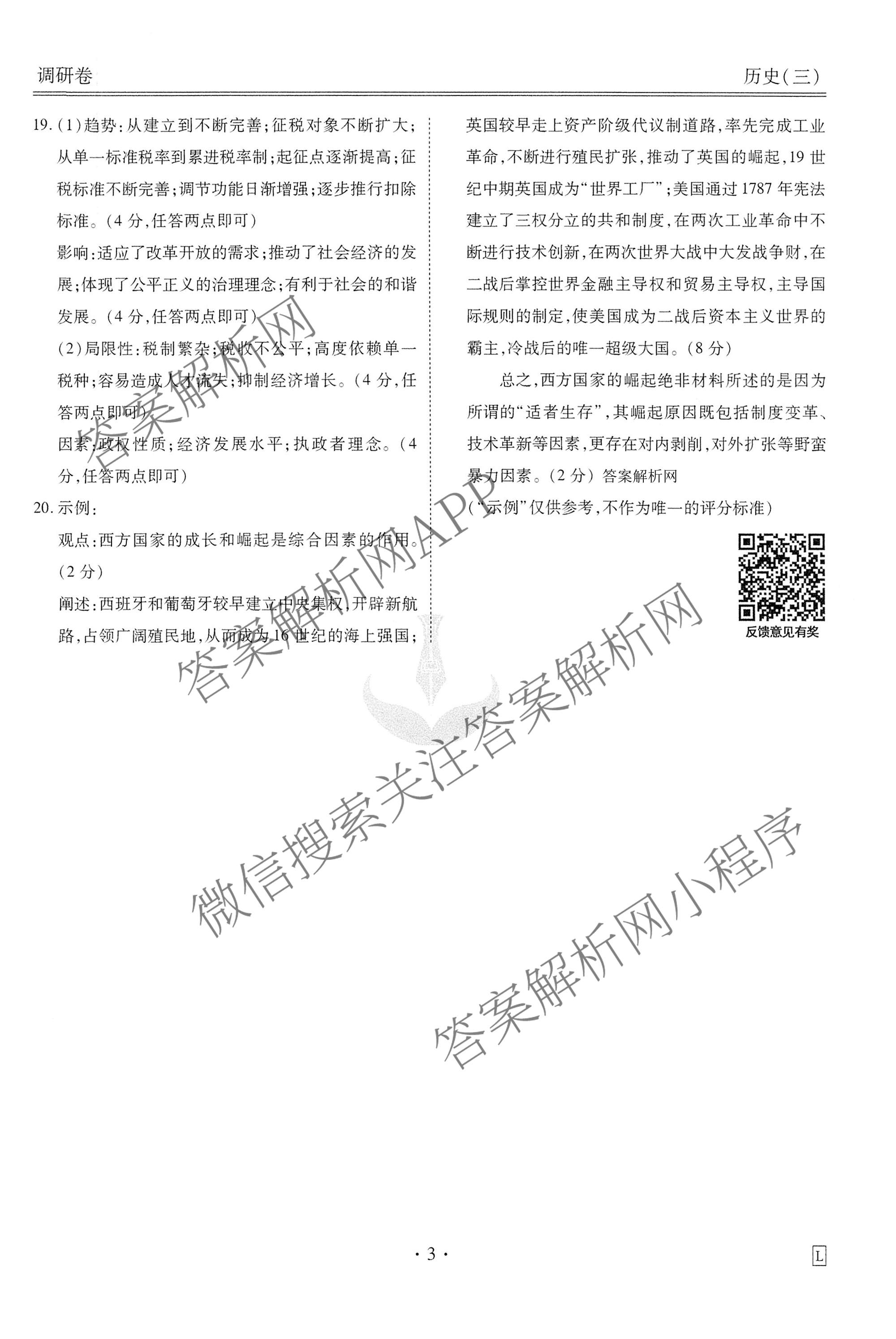 - [衡水金卷先享题]调研卷2026年普通高中学业水平等级考试模拟试题(三)3历史(山东专版)答案