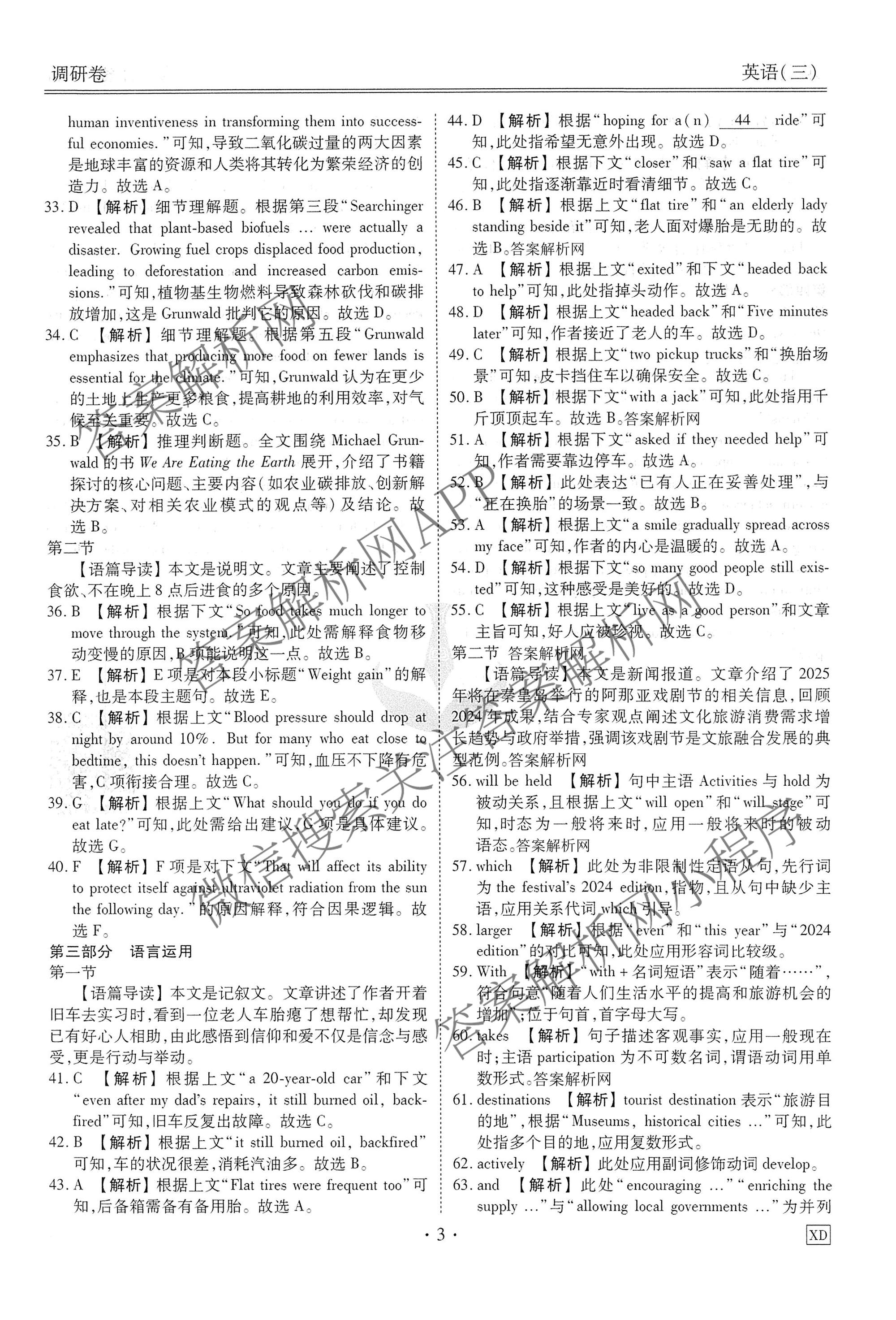 - [高三](衡水金卷先享题)·调研卷·2026年普通高等学校招生全国统一考试模拟(三)3英语(不含听力)答案