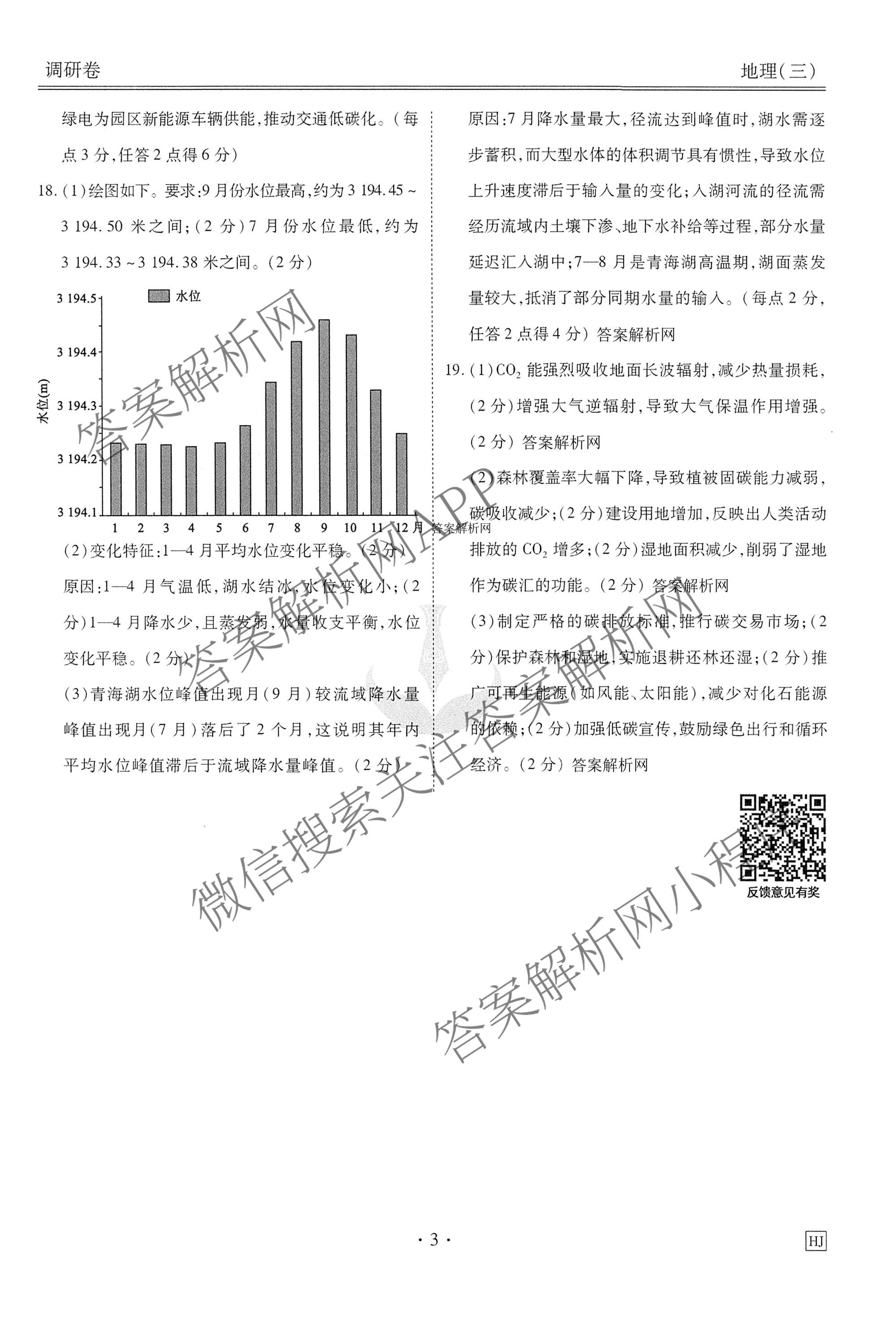 - [高三]衡水金卷先享题·调研卷·2026年普通高中学业水平选择性考试模拟试题(三)3地理(HJ)答案