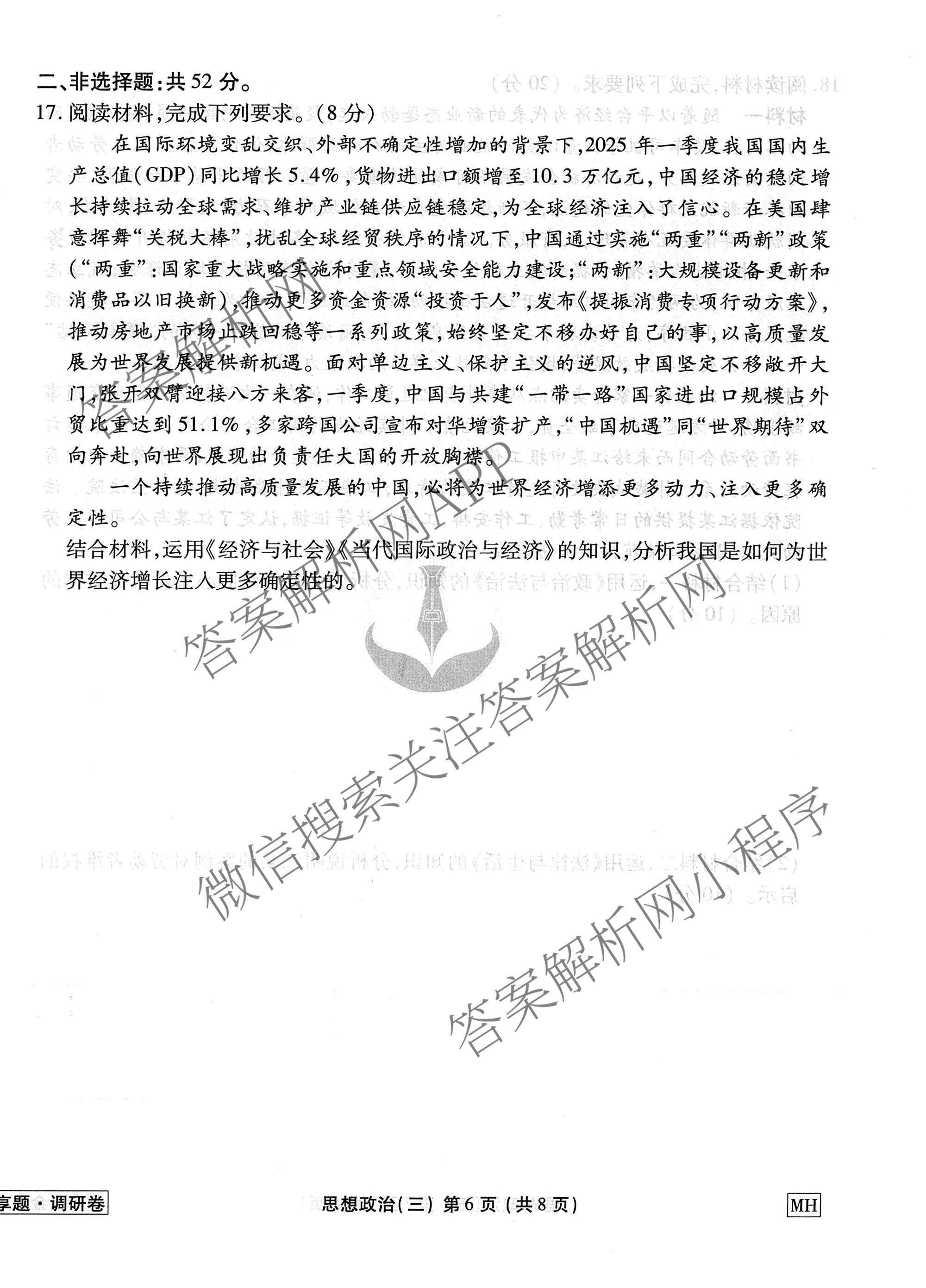 - (高三)[衡水金卷先享题]调研卷2026年普通高中学业水平选择性考试模拟试题(三)3政治(GX)试题