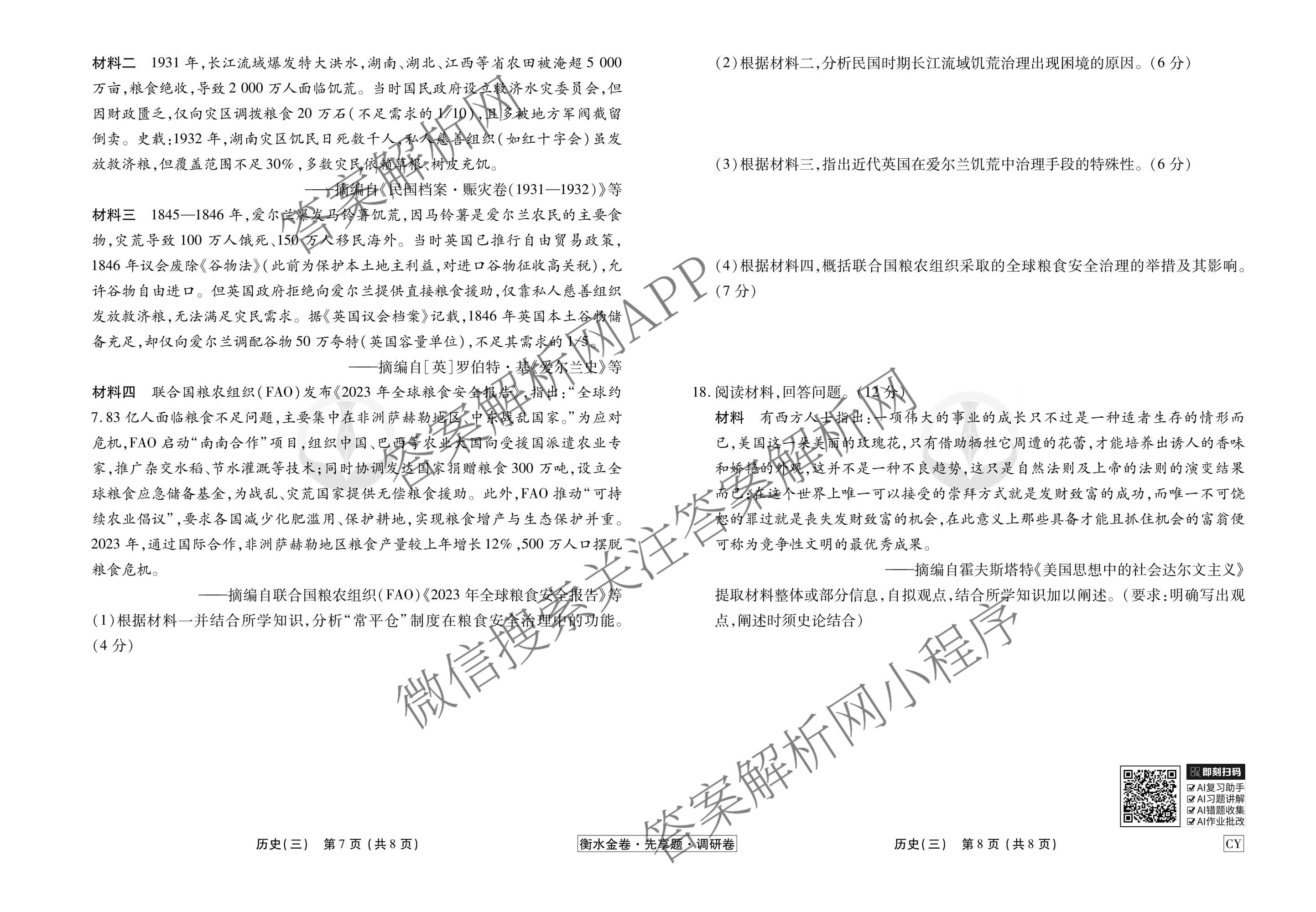 - (高三)(衡水金卷先享题)·调研卷·2026年普通高中学业水平选择性考试模拟试题(三)3历史(AH)试题
