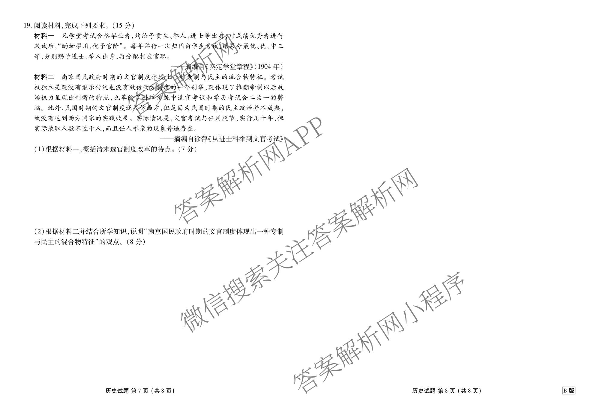 衡水金卷·2025-2026学年高三年级阶段性自测(12.29)历史(B版)试题,目前衡水金卷先享题答案网已经汇总了衡水金卷·2025-2026学年高三年级阶段性自测(12.29)历史(B版)试题的各科答案和试卷,获取更多衡水金卷先享题答案解析,请在关注本站。