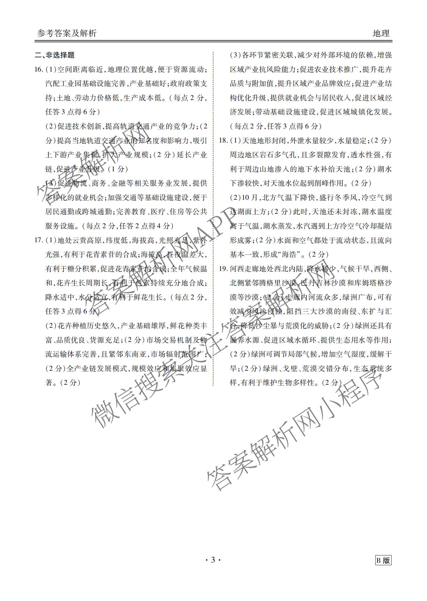 - 2025-2026衡水金卷·学年[高三]年级阶段性自测(12.29)地理(B版)答案