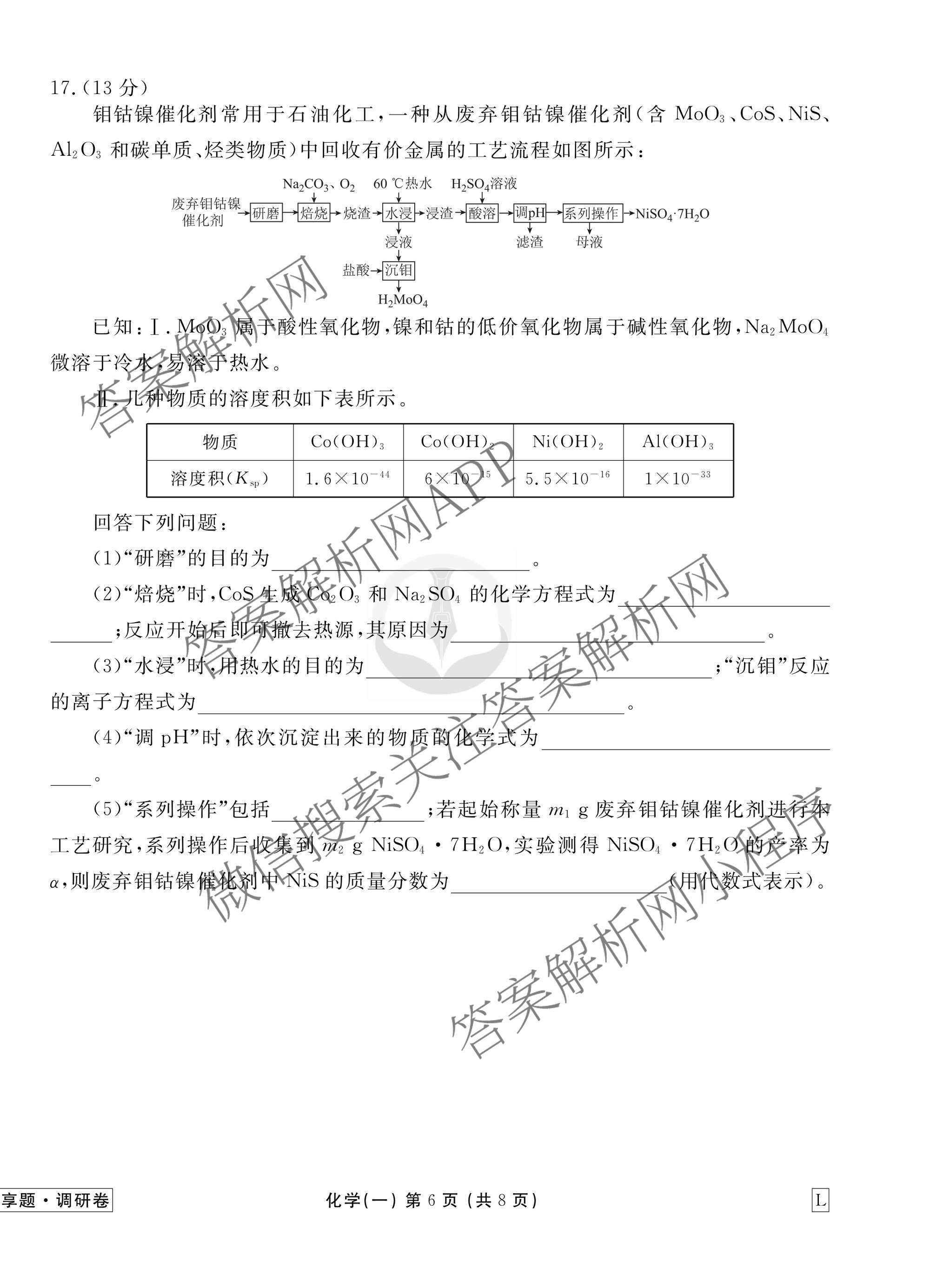 - (高三)(衡水金卷先享题)·调研卷·2026年普通高中学业水平选择性考试模拟试题(一)1化学(GS)试题