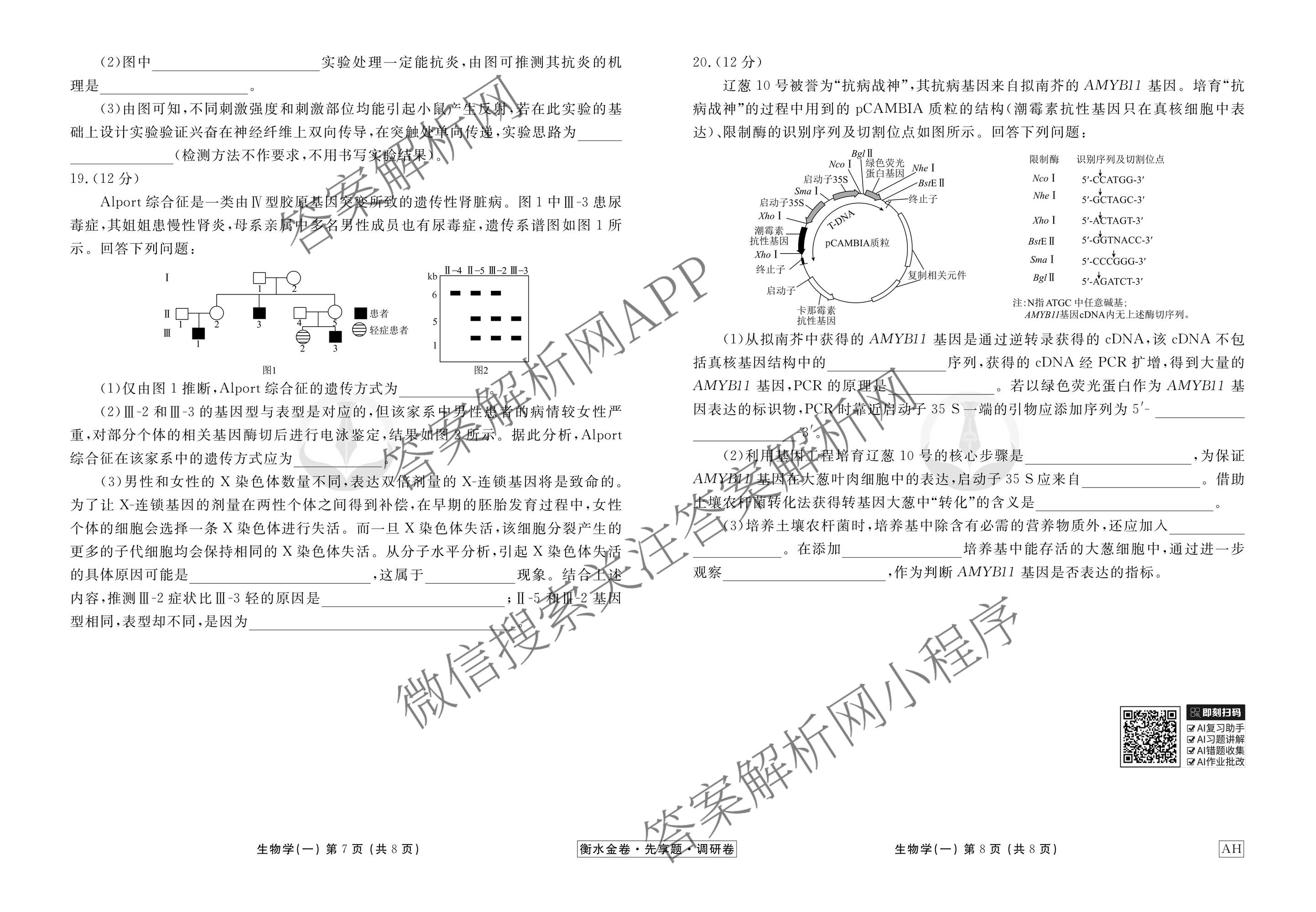 衡水金卷先享题·调研卷·2026年普通高中学业水平选择性考试模拟试题(一)1生物(AH)试题,目前衡水金卷先享题答案网已经汇总了衡水金卷先享题·调研卷·2026年普通高中学业水平选择性考试模拟试题(一)1生物(AH)试题的各科答案和试卷,获取更多衡水金卷先享题答案解析,请在关注本站。