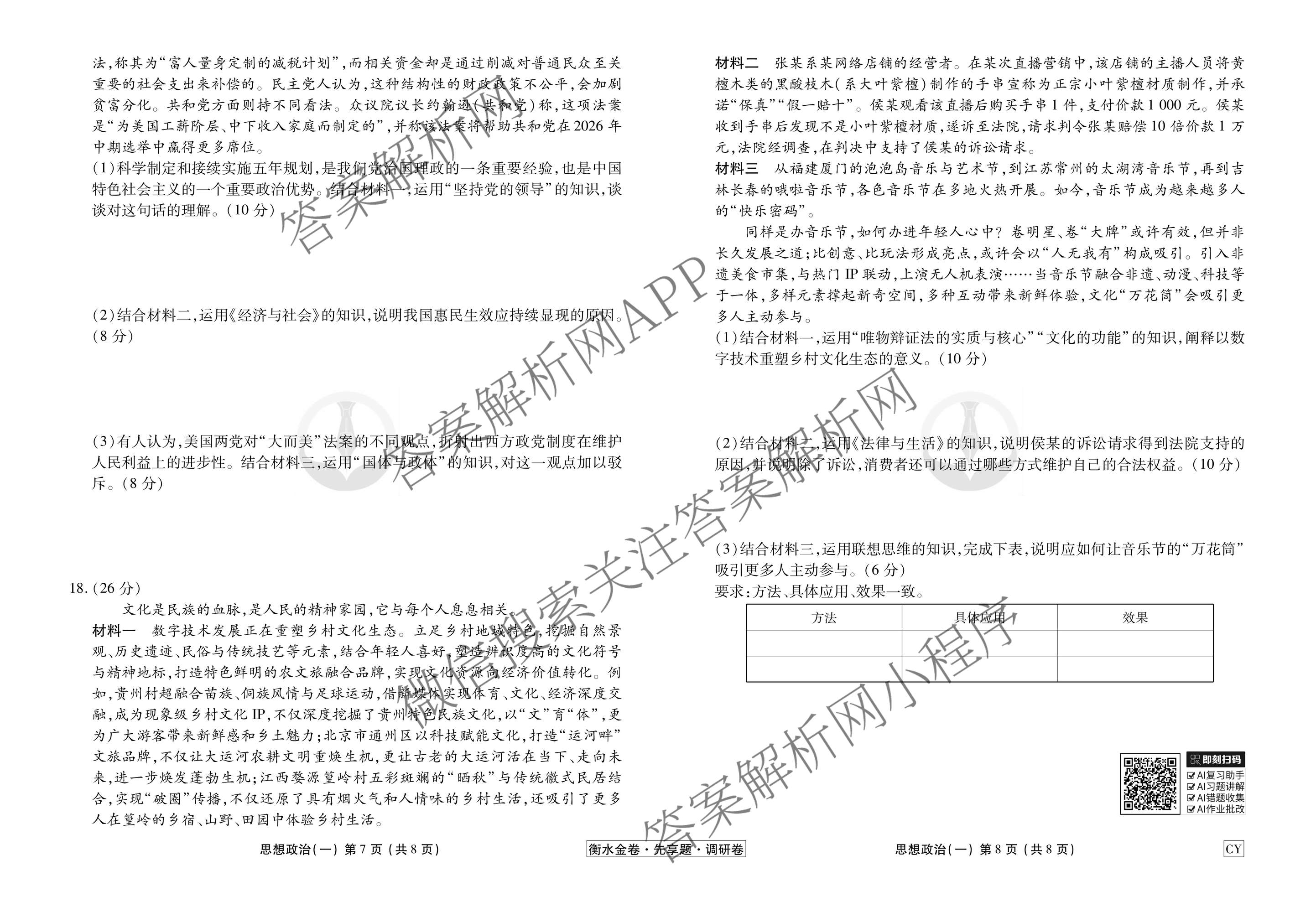 衡水金卷先享题·调研卷·2026年普通高中学业水平选择性考试模拟试题(一)1政治(CY)试题,目前衡水金卷先享题答案网已经汇总了衡水金卷先享题·调研卷·2026年普通高中学业水平选择性考试模拟试题(一)1政治(CY)试题的各科答案和试卷,获取更多衡水金卷先享题答案解析,请在关注本站。