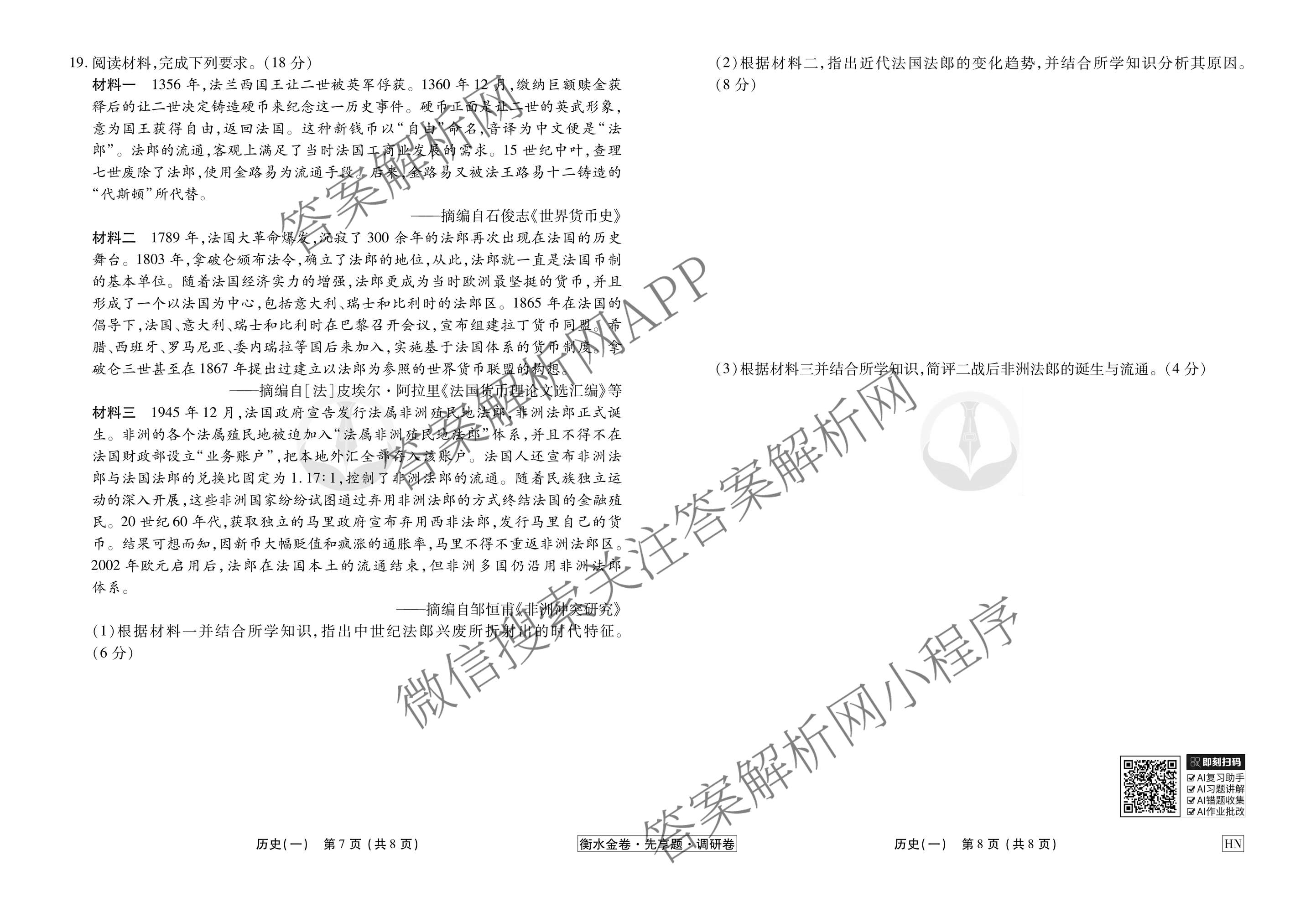 - [衡水金卷先享题]调研卷2026年普通高中学业水平选择性考试模拟试题(一)1历史(HN)答案