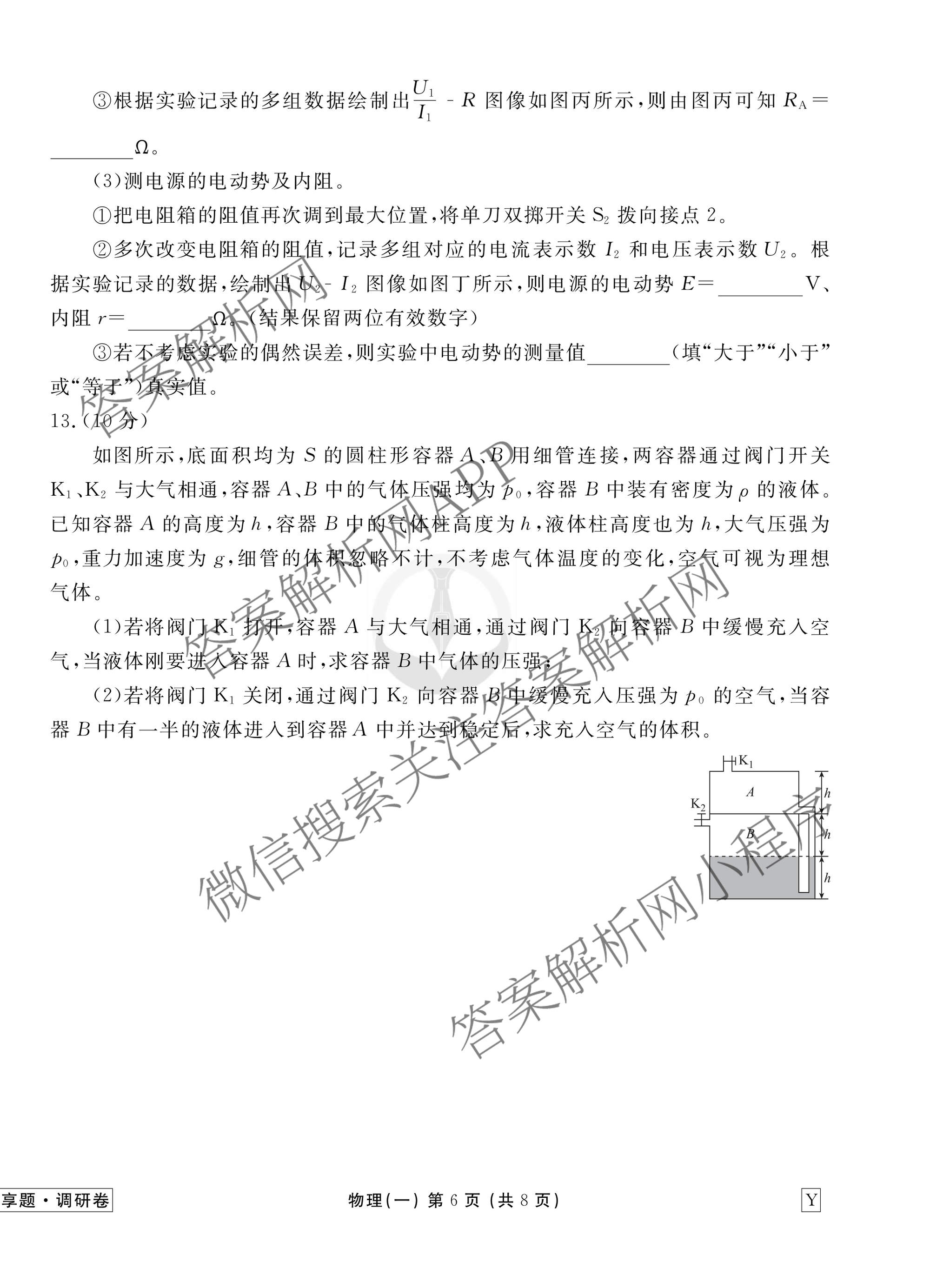 衡水金卷先享题·调研卷·2026年普通高中学业水平选择性考试模拟(一)1物理(Y)试题,目前衡水金卷先享题答案网已经汇总了衡水金卷先享题·调研卷·2026年普通高中学业水平选择性考试模拟(一)1物理(Y)试题的各科答案和试卷,获取更多衡水金卷先享题答案解析,请在关注本站。