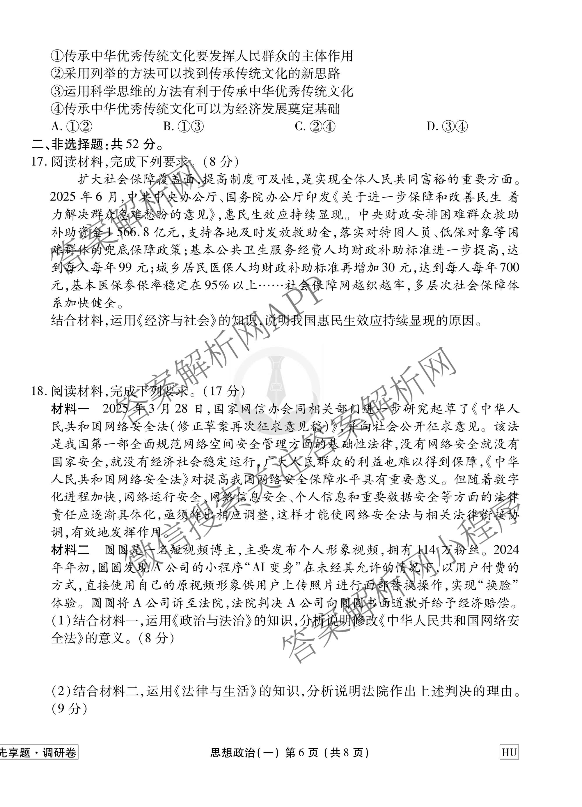 衡水金卷先享题·调研卷·2026年普通高中学业水平选择性考试模拟试题(一)1政治(HU)试题,目前衡水金卷先享题答案网已经汇总了衡水金卷先享题·调研卷·2026年普通高中学业水平选择性考试模拟试题(一)1政治(HU)试题的各科答案和试卷,获取更多衡水金卷先享题答案解析,请在关注本站。