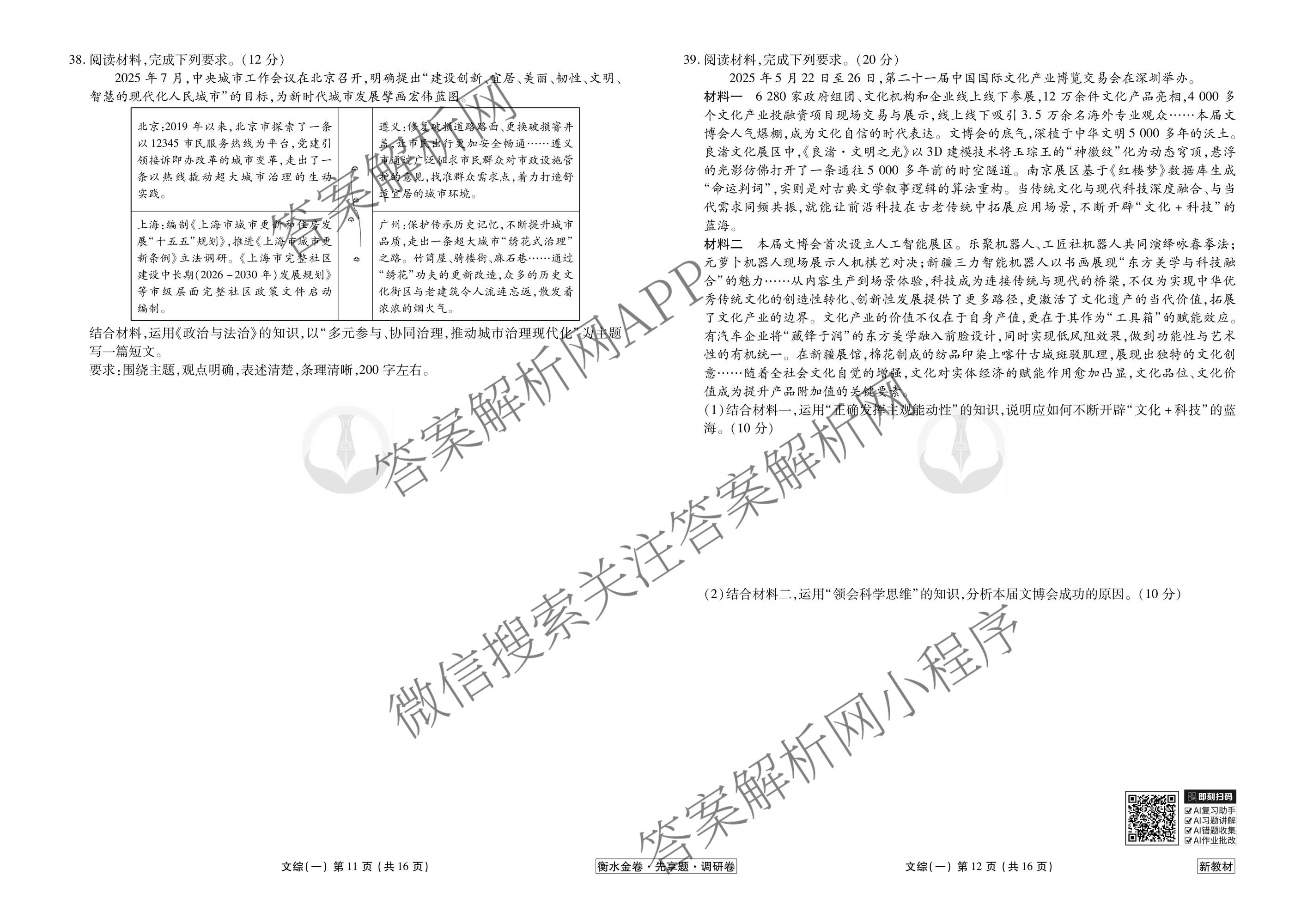 衡水金卷先享题·调研卷·2026年普通高等学校招生全国统一考试模拟(一)1文综(新教材)试题,目前衡水金卷先享题答案网已经汇总了衡水金卷先享题·调研卷·2026年普通高等学校招生全国统一考试模拟(一)1文综(新教材)试题的各科答案和试卷,获取更多衡水金卷先享题答案解析,请在关注本站。