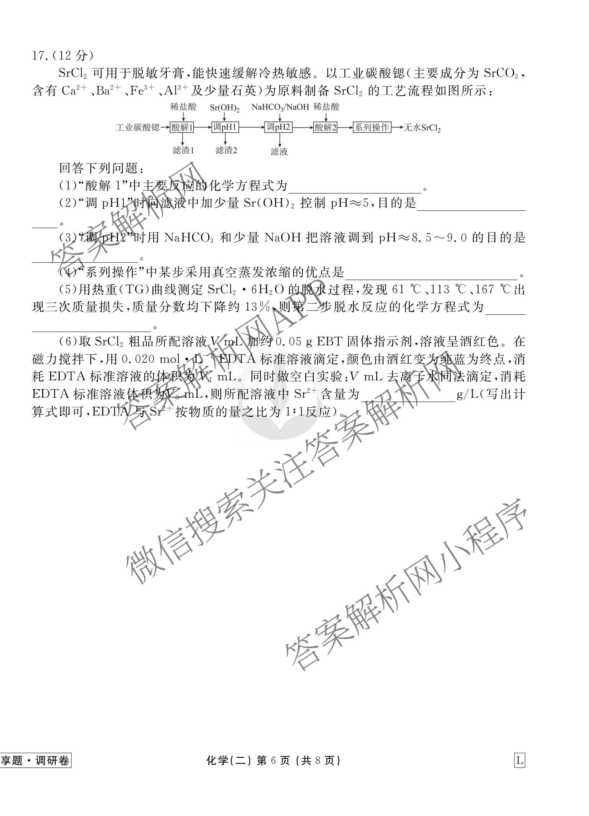- [高三]衡水金卷先享题调研卷2026年普通高中学业水平选择性考试模拟试题(二)2化学(AH)试题