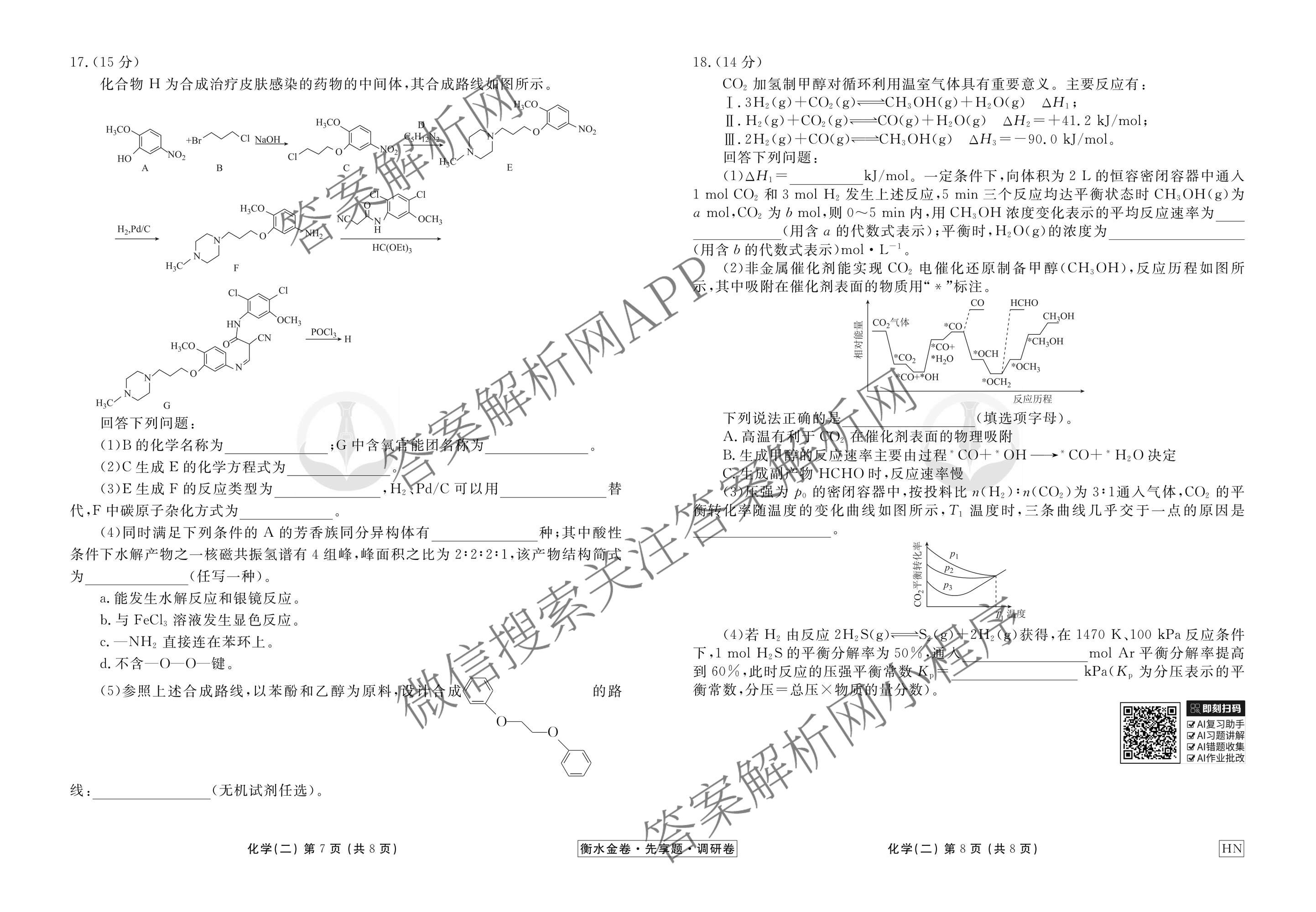 - [衡水金卷先享题]调研卷2026年普通高中学业水平选择性考试模拟试题(二)2化学(HN)答案