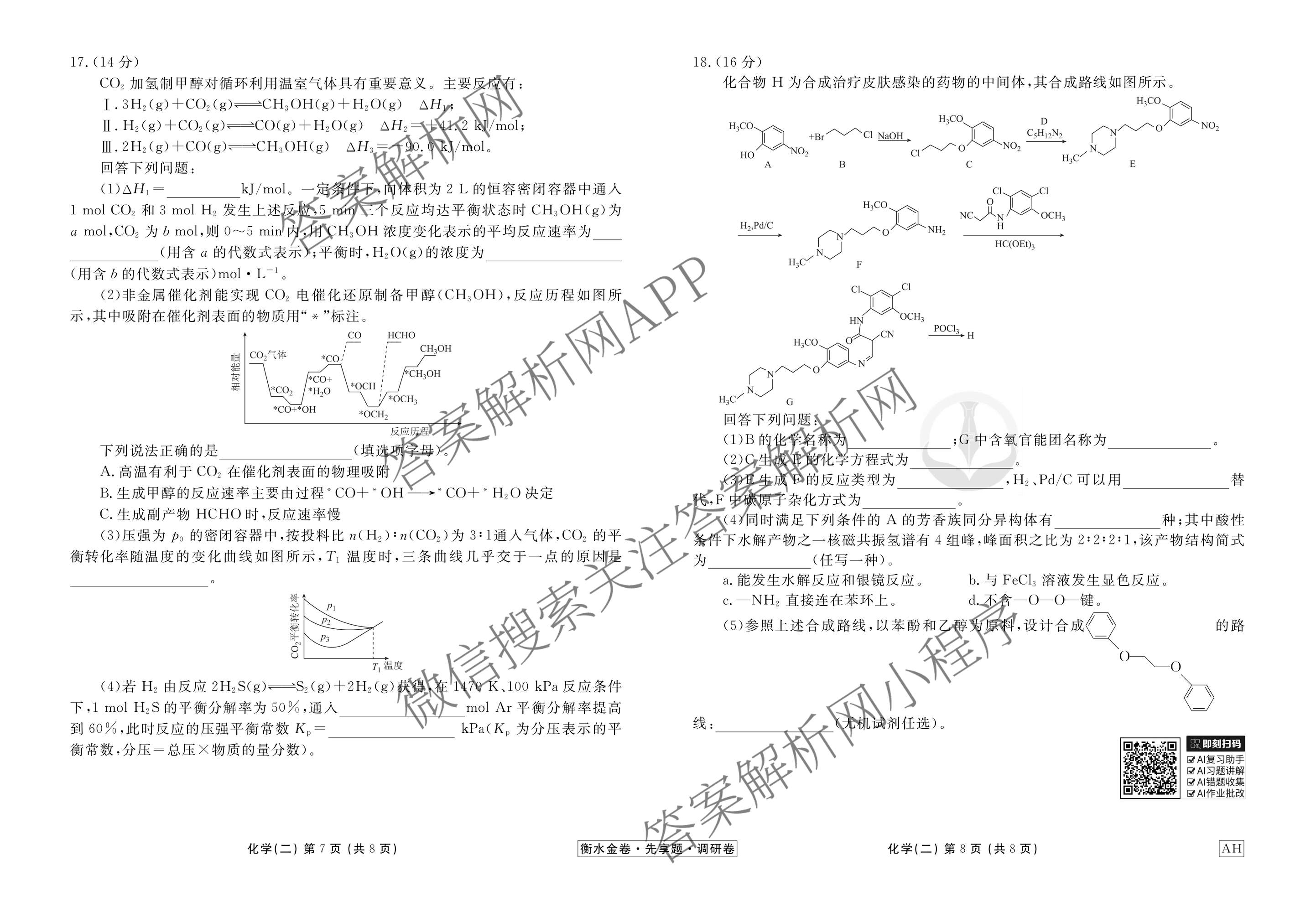 - [高三]衡水金卷先享题调研卷2026年普通高中学业水平选择性考试模拟试题(二)2化学(AH)试题
