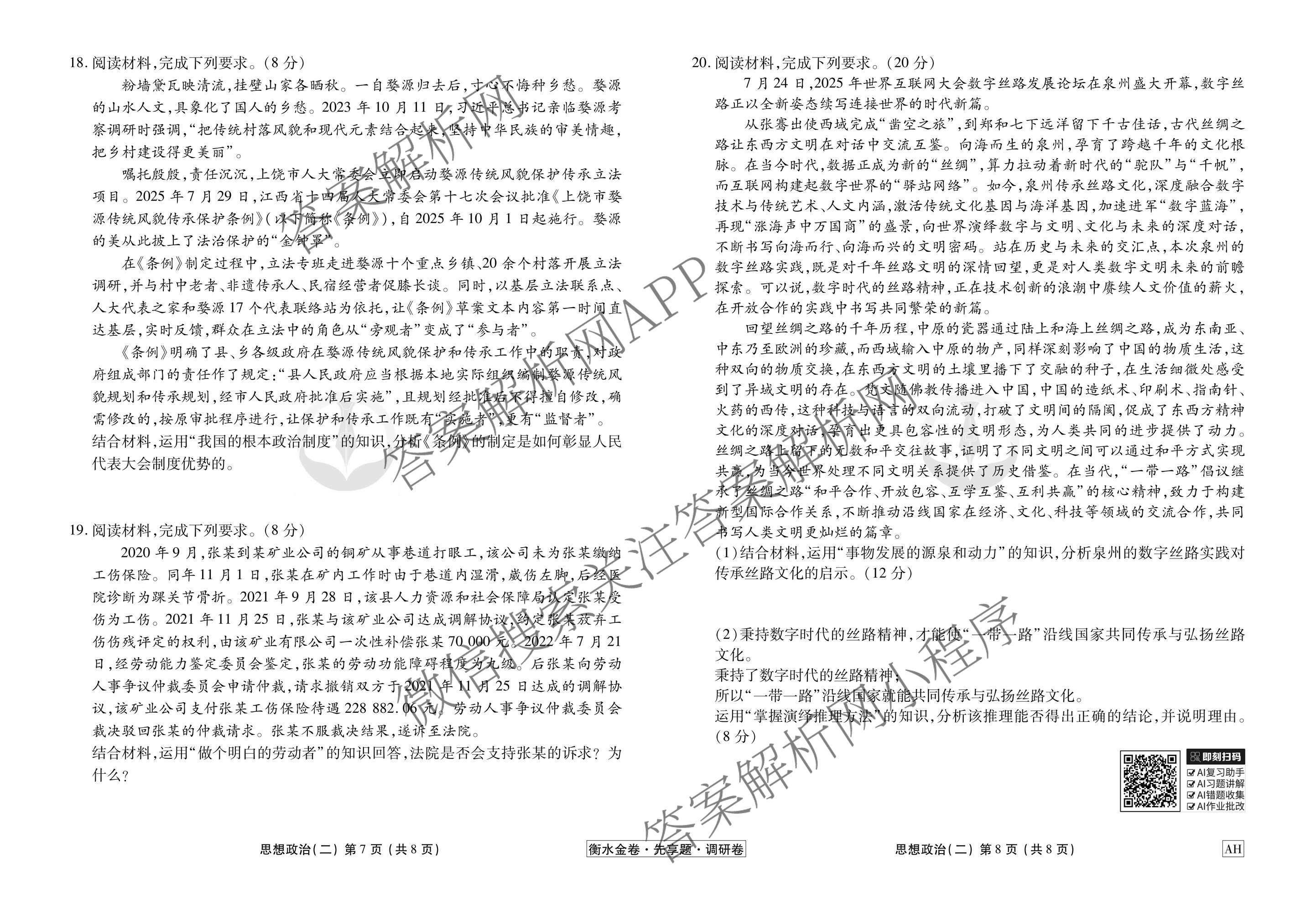 衡水金卷先享题·调研卷·2026年普通高中学业水平选择性考试模拟试题(二)2政治(AH)试题,目前衡水金卷先享题答案网已经汇总了衡水金卷先享题·调研卷·2026年普通高中学业水平选择性考试模拟试题(二)2政治(AH)试题的各科答案和试卷,获取更多衡水金卷先享题答案解析,请在关注本站。
